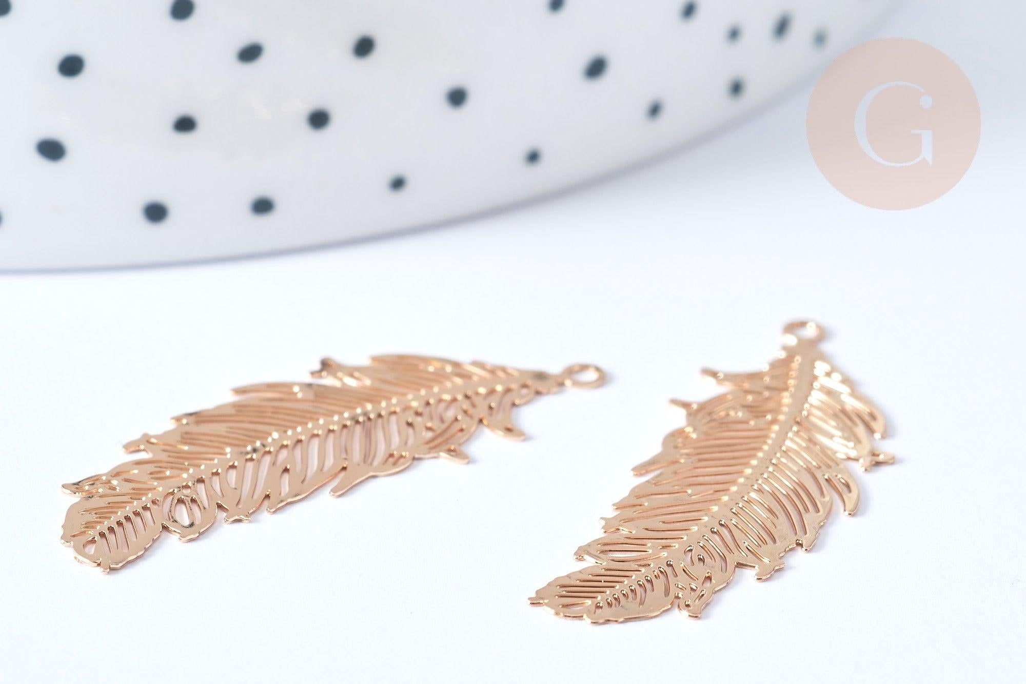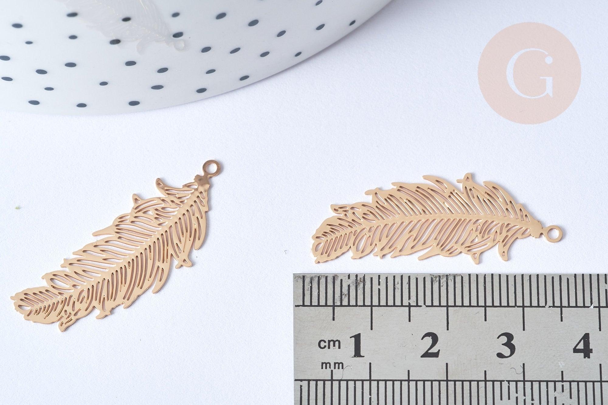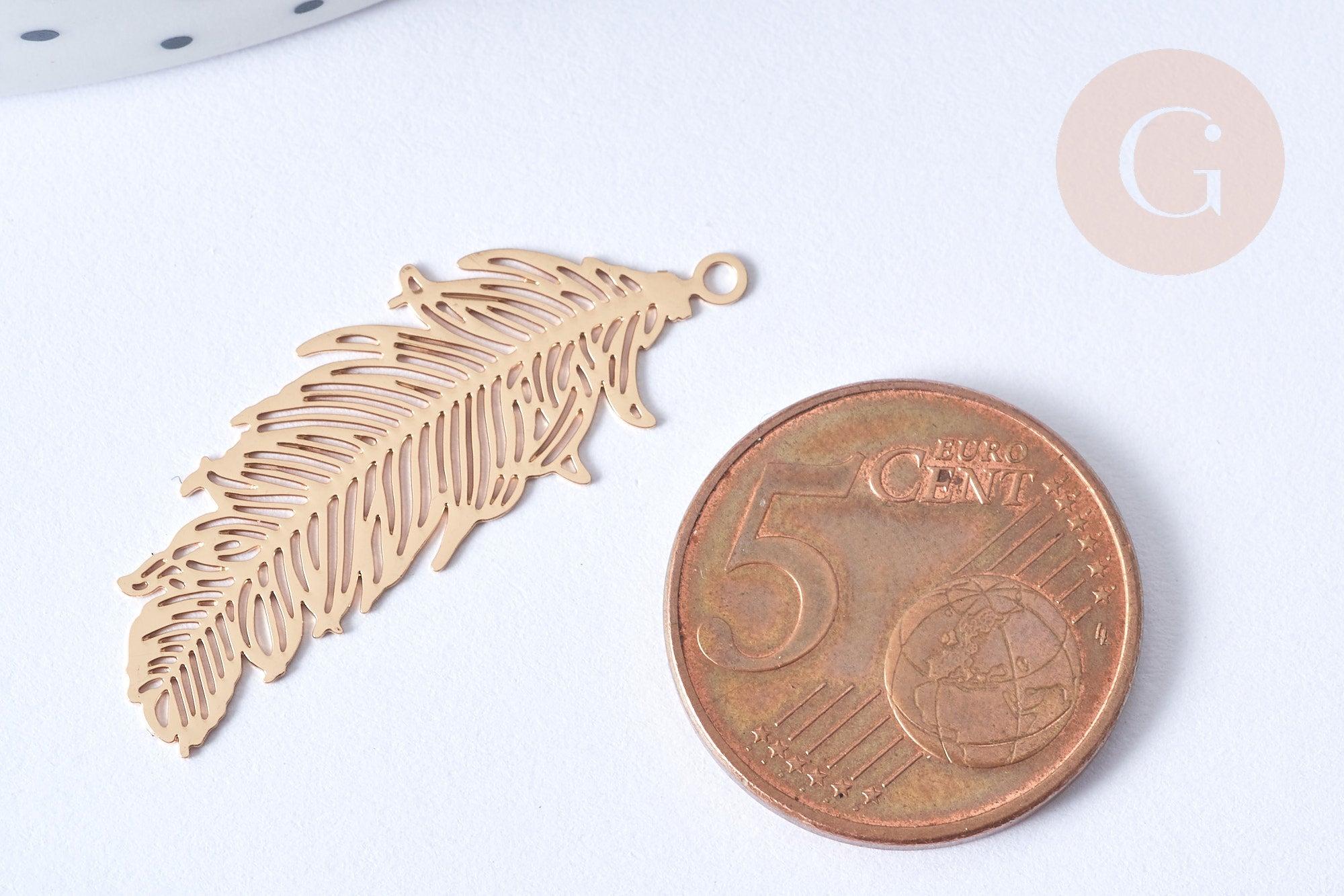 Adopte esta pluma para dar un toque ligero a sus creaciones de bisutería, está realizada en latón dorado. Muy de moda, este símbolo aireado y suave es muy popular en joyería. Para un look rockero, bohemio chic o romántico, a mucha gente le encantará.