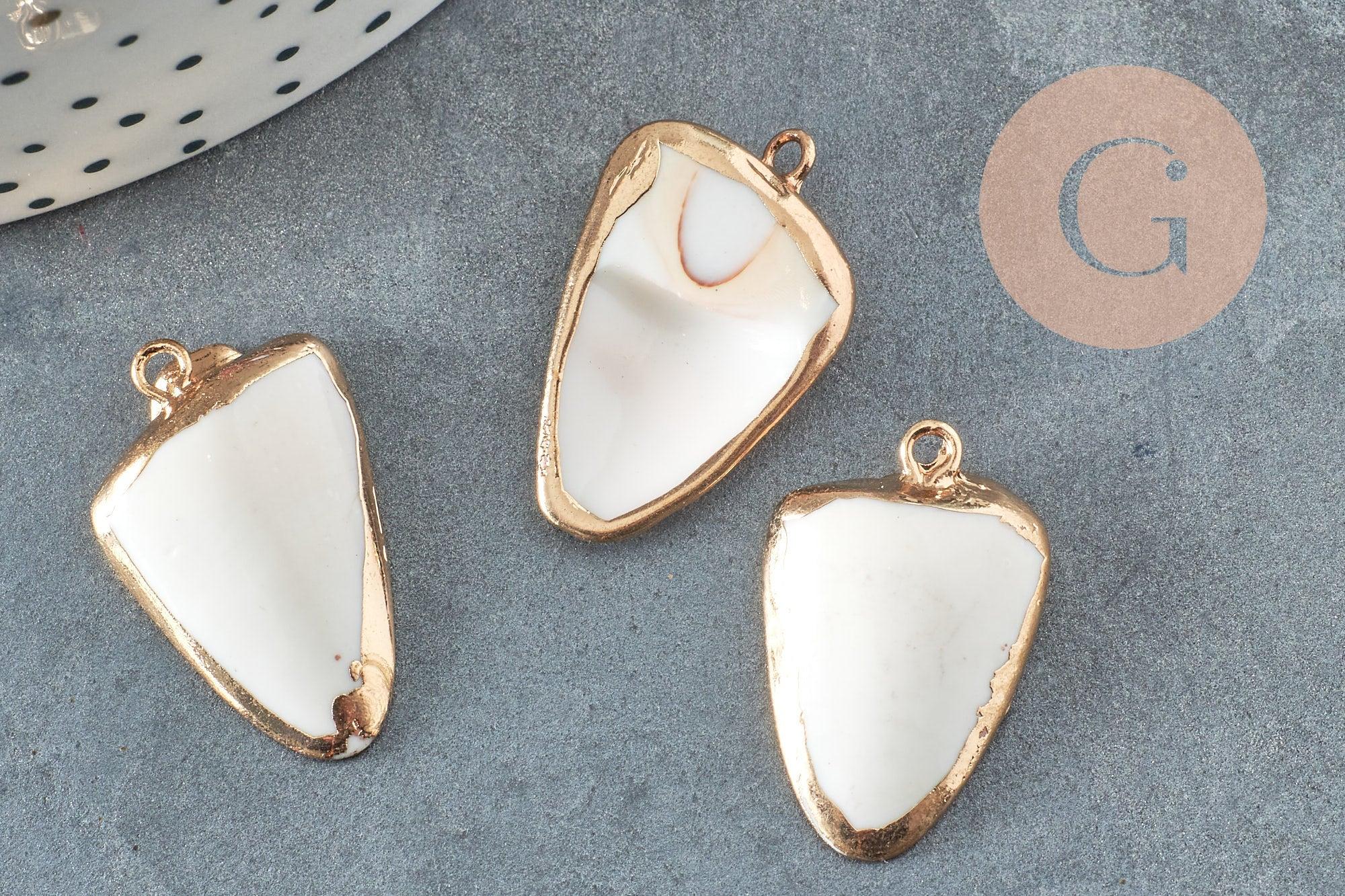 Colgante con punta de concha blanca en latón bañado en oro 30-40 mm, x1 (G7096)