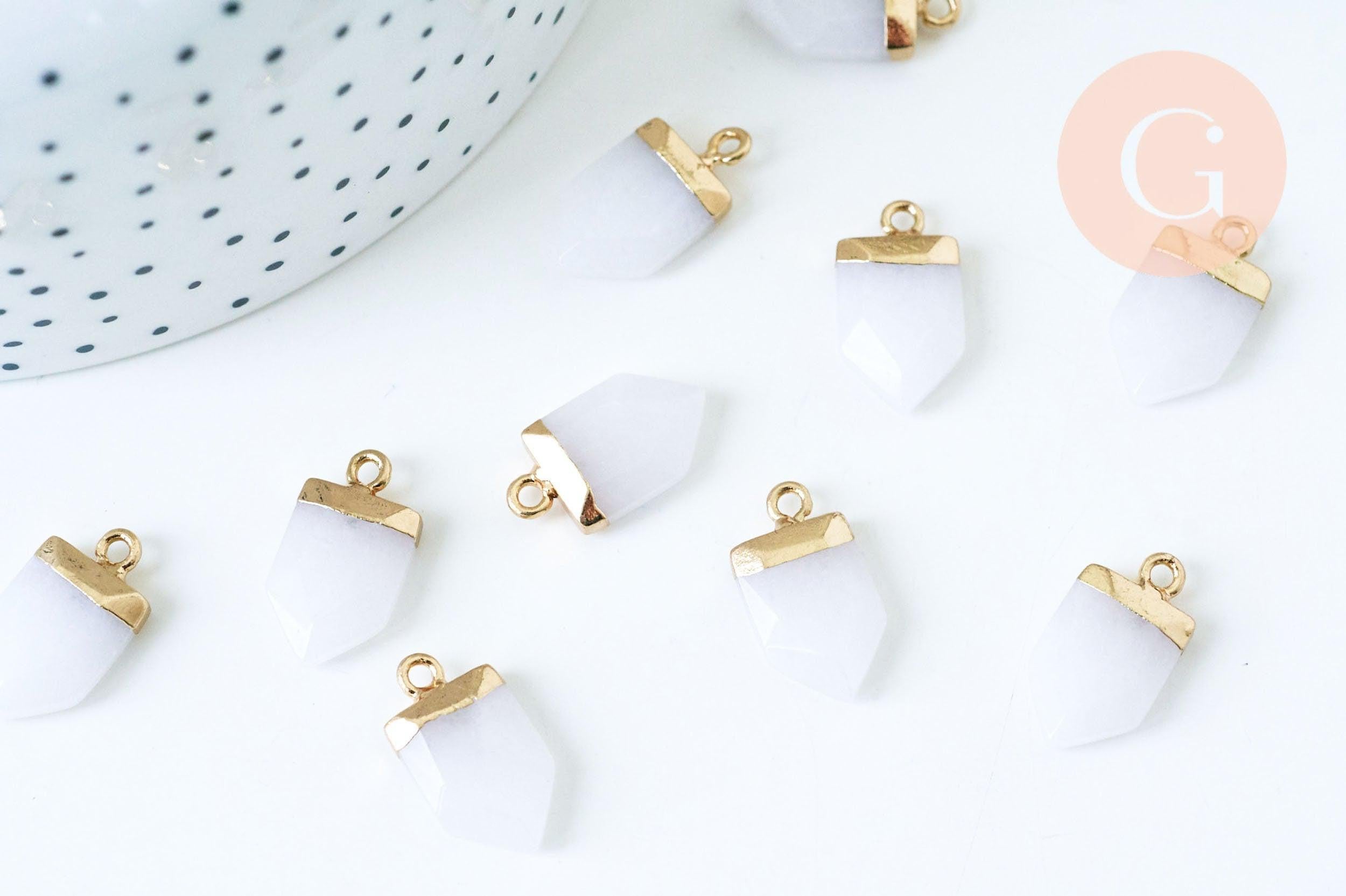 Colgante punta de jade blanco, colgante, joyería de piedra, colgante de piedra, jade natural, colgante de piedra natural, 19mm, x1 G5713