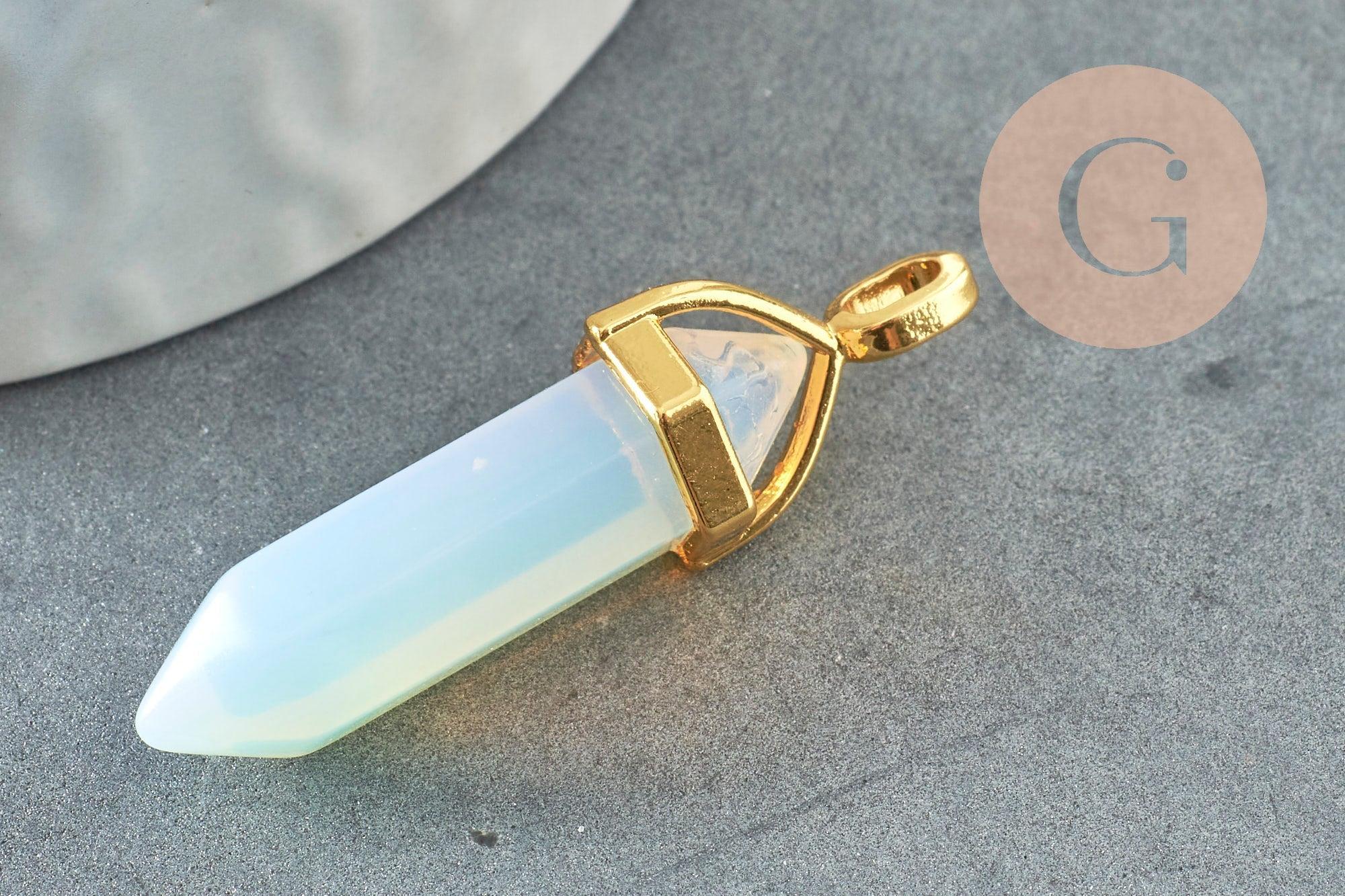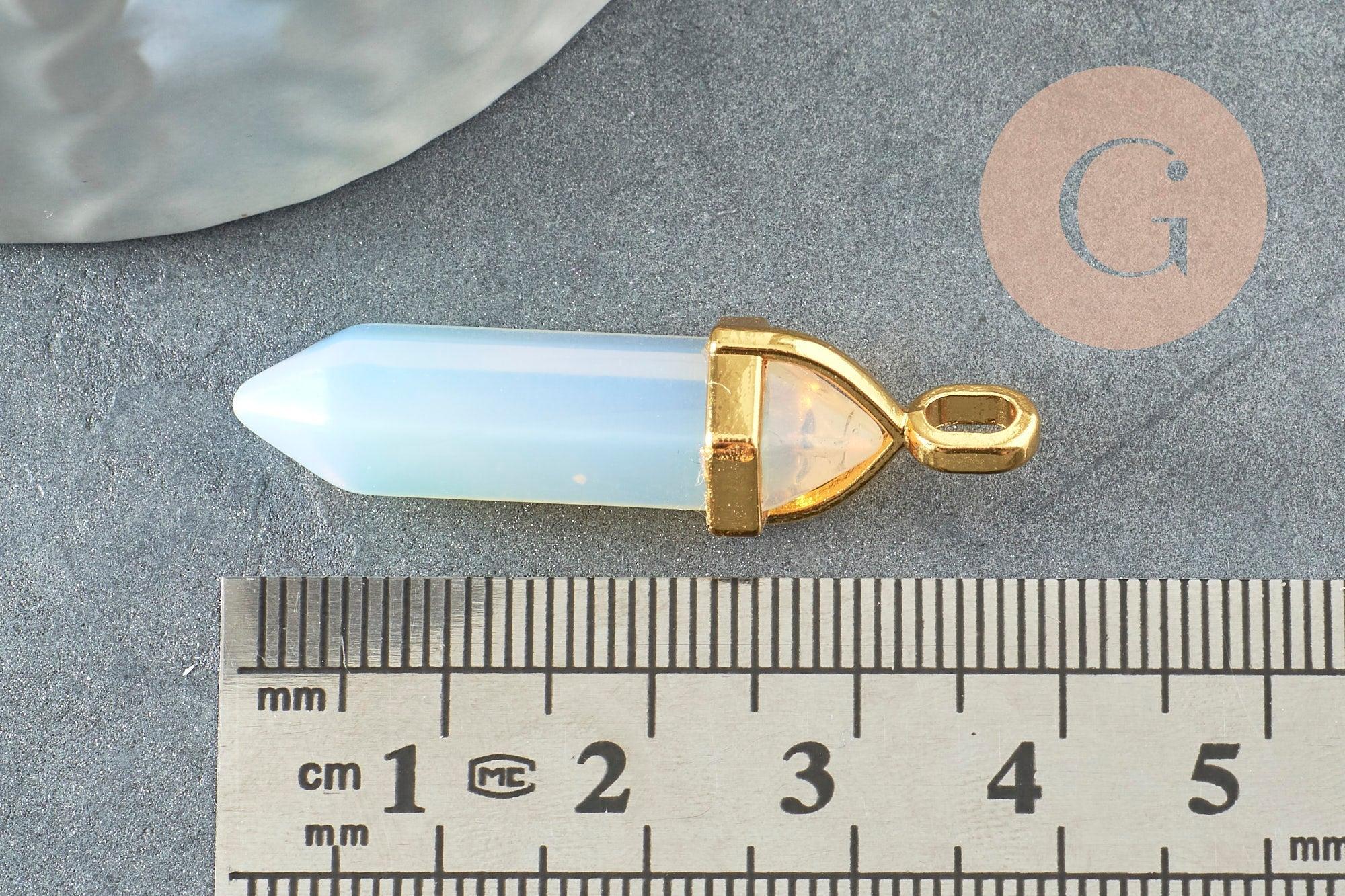 Pendentif pointe opalite opaque zamac doré 37~40mm, pendentif bijoux pierre, opalite naturelle, 37~40mm, x1 G0087