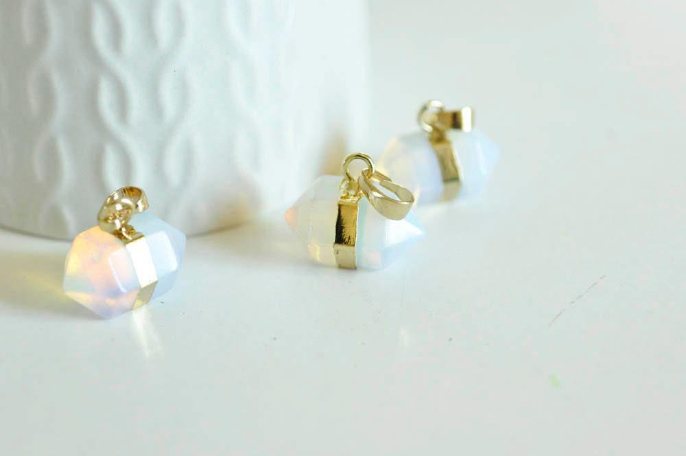 Colgante de opalita de doble punta con respaldo de oro