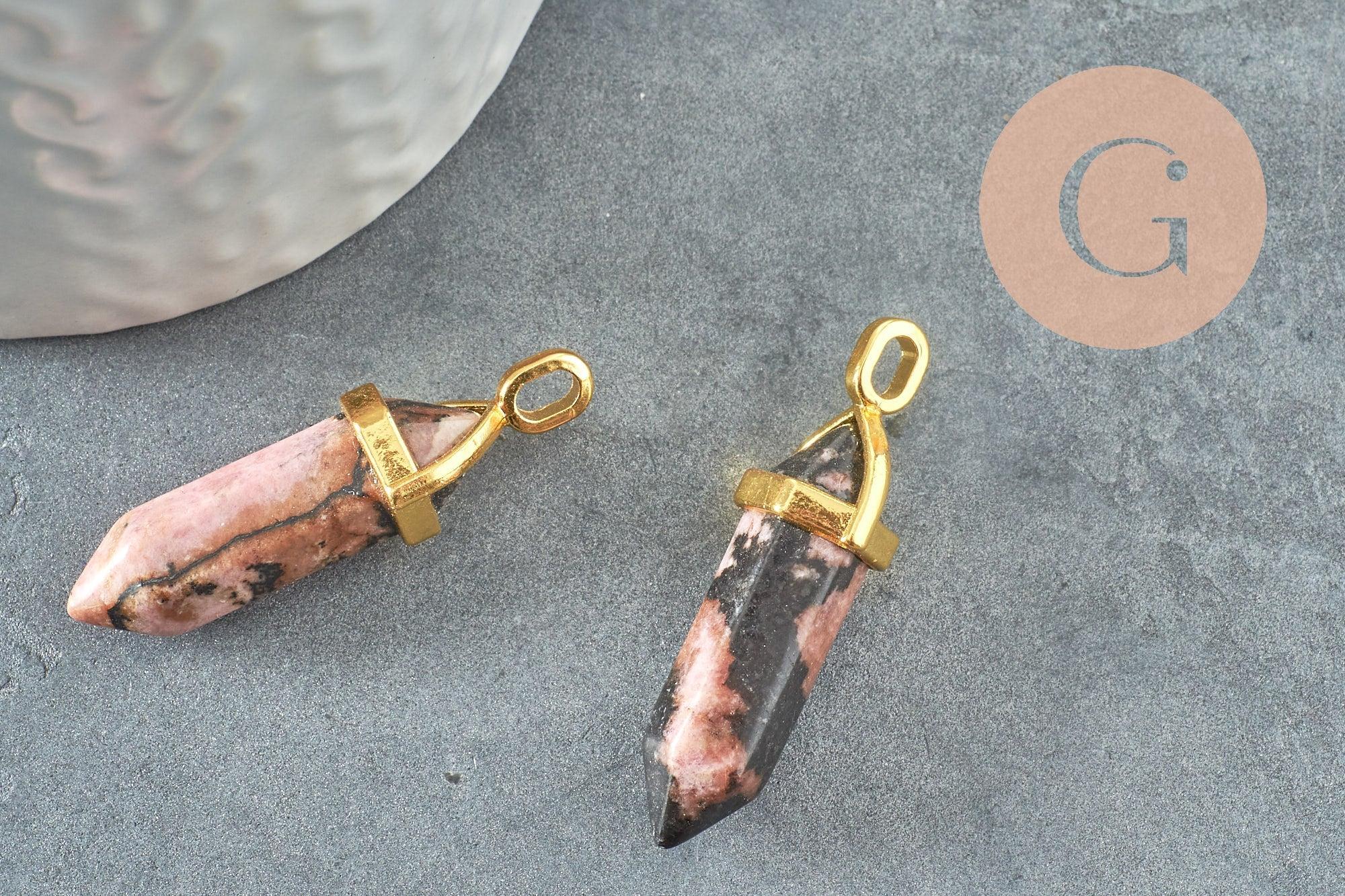Colgante punta rodonita natural con zamac dorado 38mm, creación de joyería con piedras naturales x1 G2802