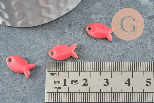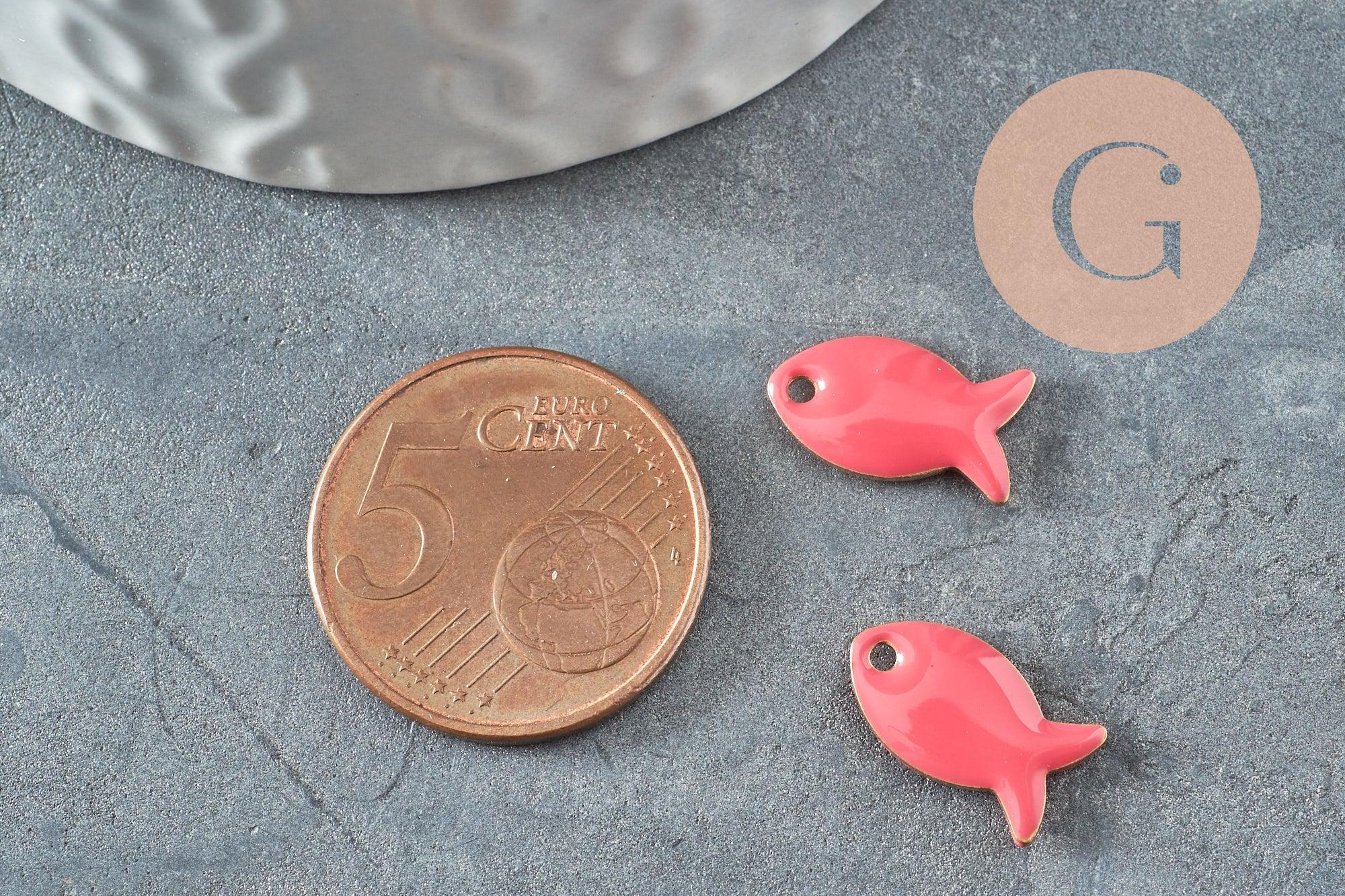 Este colgante en forma de pez, de latón bruto recubierto de esmalte rosa brillante , aporta un toque de frescura y ligereza a tus creaciones. I