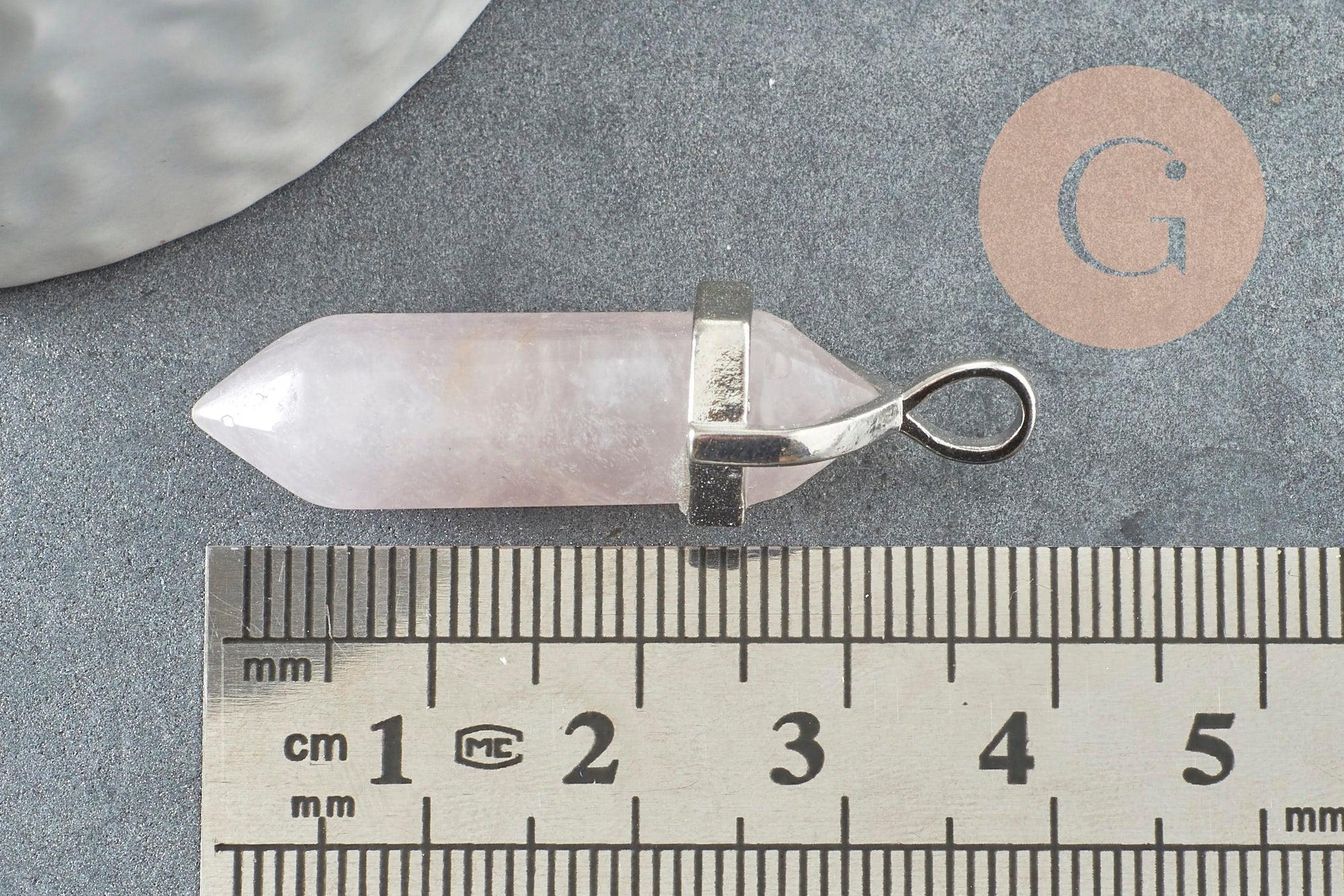 Colgante de cuarzo rosa puntiagudo, piedra en bruto, creación de joyas, colgante de piedra, colgante de plata, piedra natural, 39mm, x1 G0556