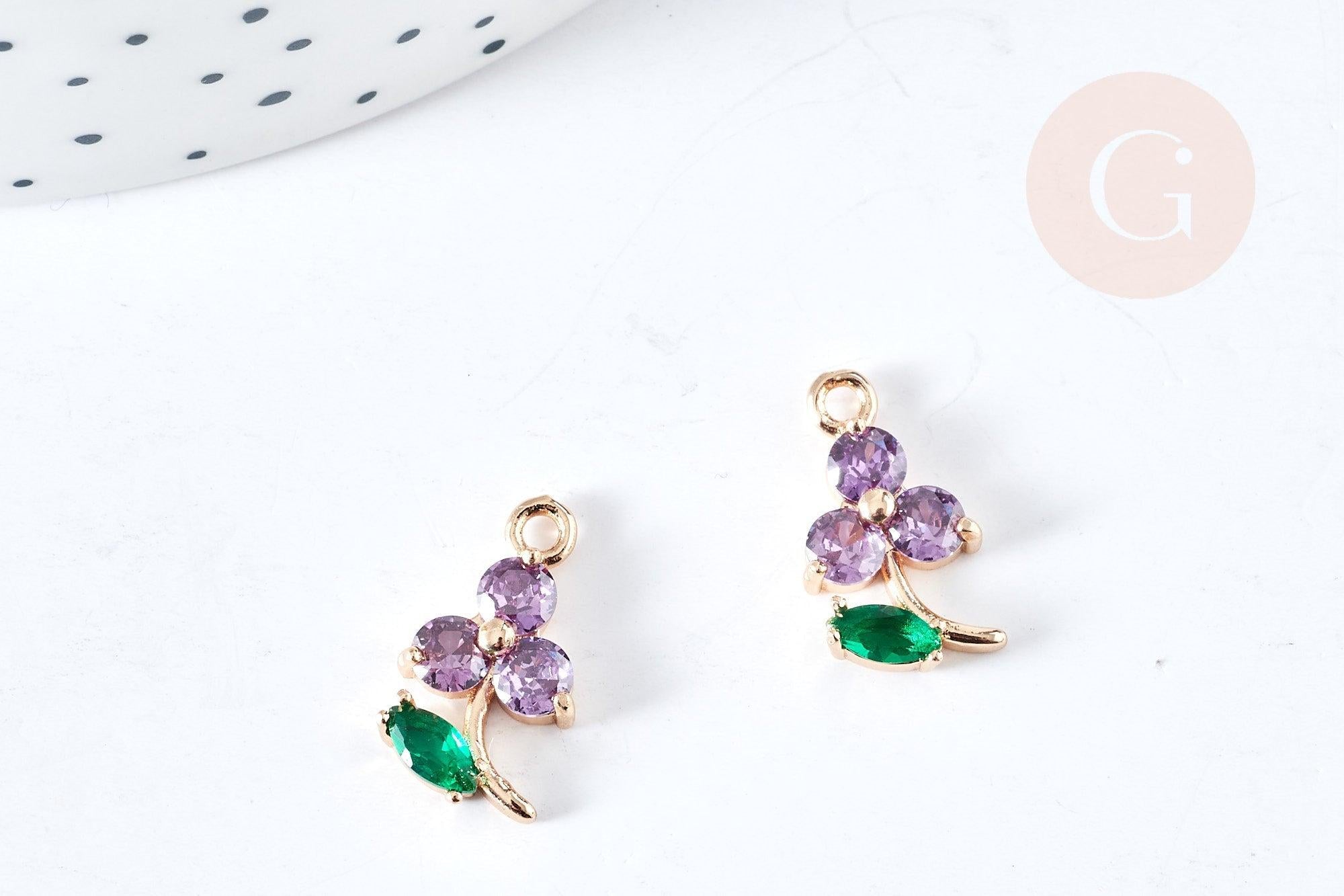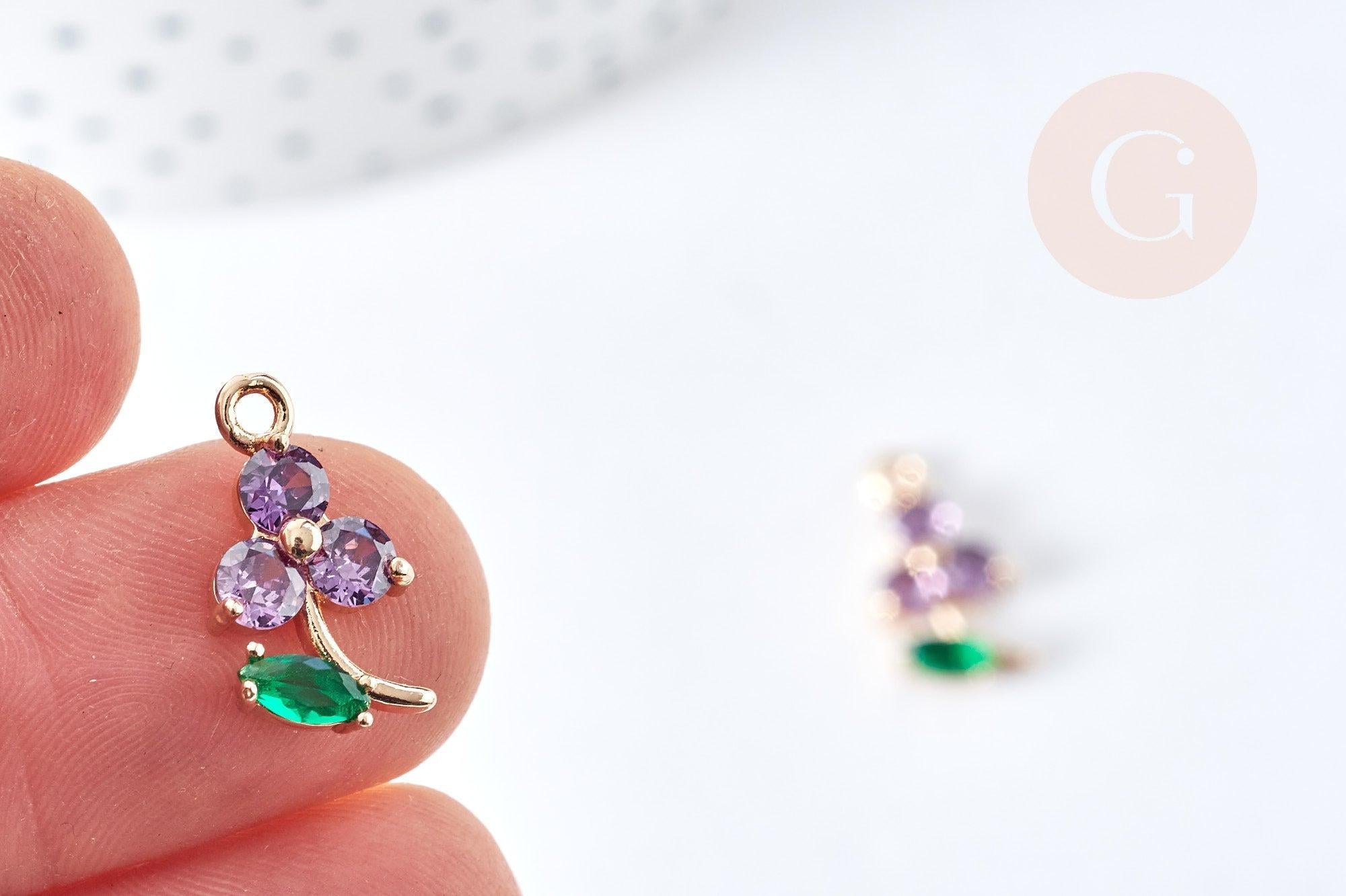El colgante de flor con circonitas de color latón dorado de 17 mm se vende individualmente y es perfecto para diseñadores de joyas que buscan añadir un toque de color a sus creaciones.