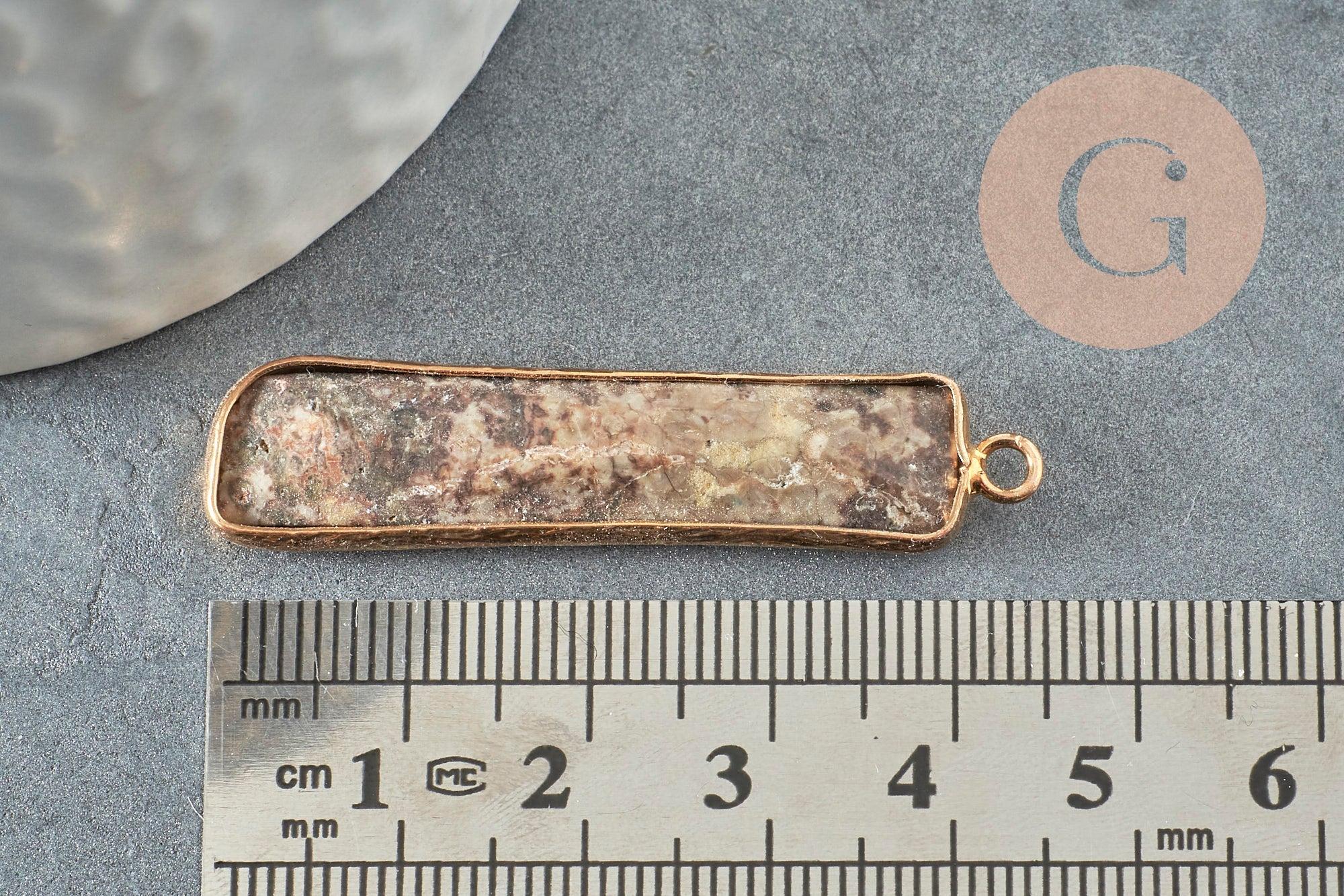 Colgante rectangular jaspe marino natural latón dorado 46.5mm, creación de joyería con piedras naturales x1 G1406