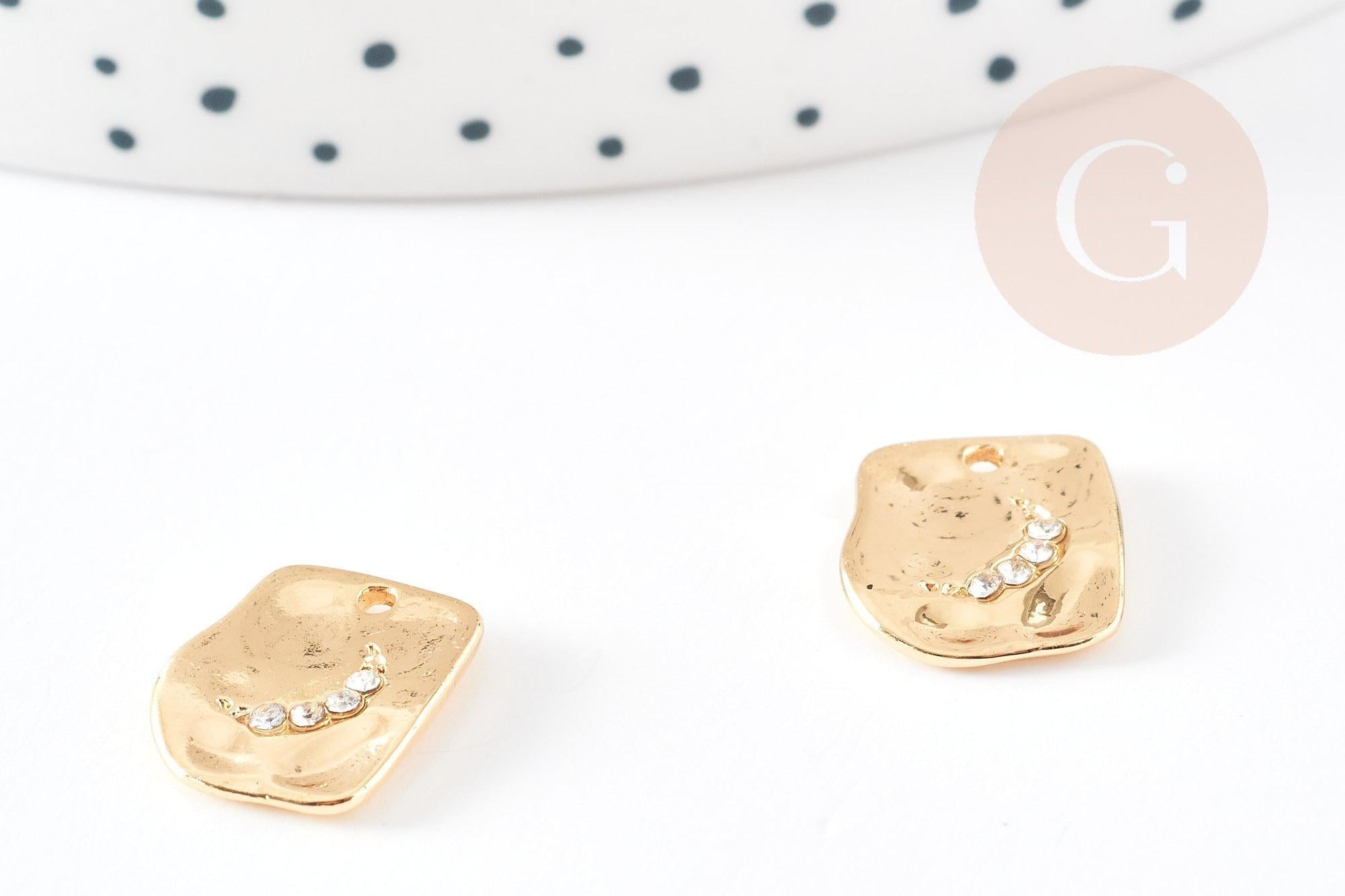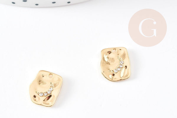 Colgante rectángulo luna zamac oro 18k martillado 14mm, luna zircón para creación joyería, colgante luna oro x1 G4767
