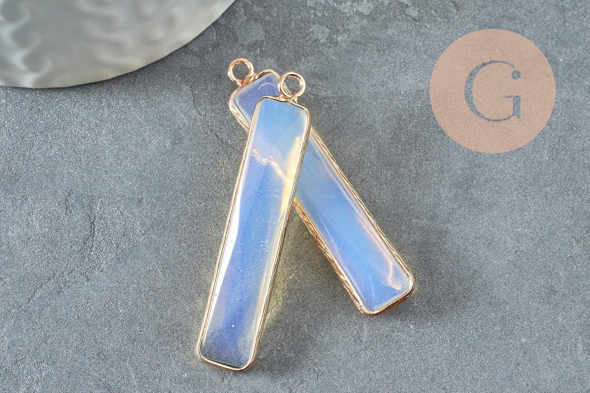 Colgante rectángulo opalita facetado de latón dorado 46,5 mm, colgante de piedra ópalo de laboratorio, x1 G2523