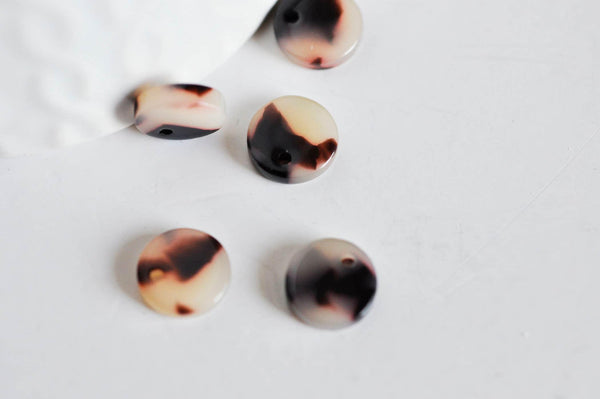 Colgante redondo de acetato beige, suministro de joyería, cuenta de acetato, creación de joyas, cuentas de plástico, conector de plástico, lote de 2-10, 10 mm