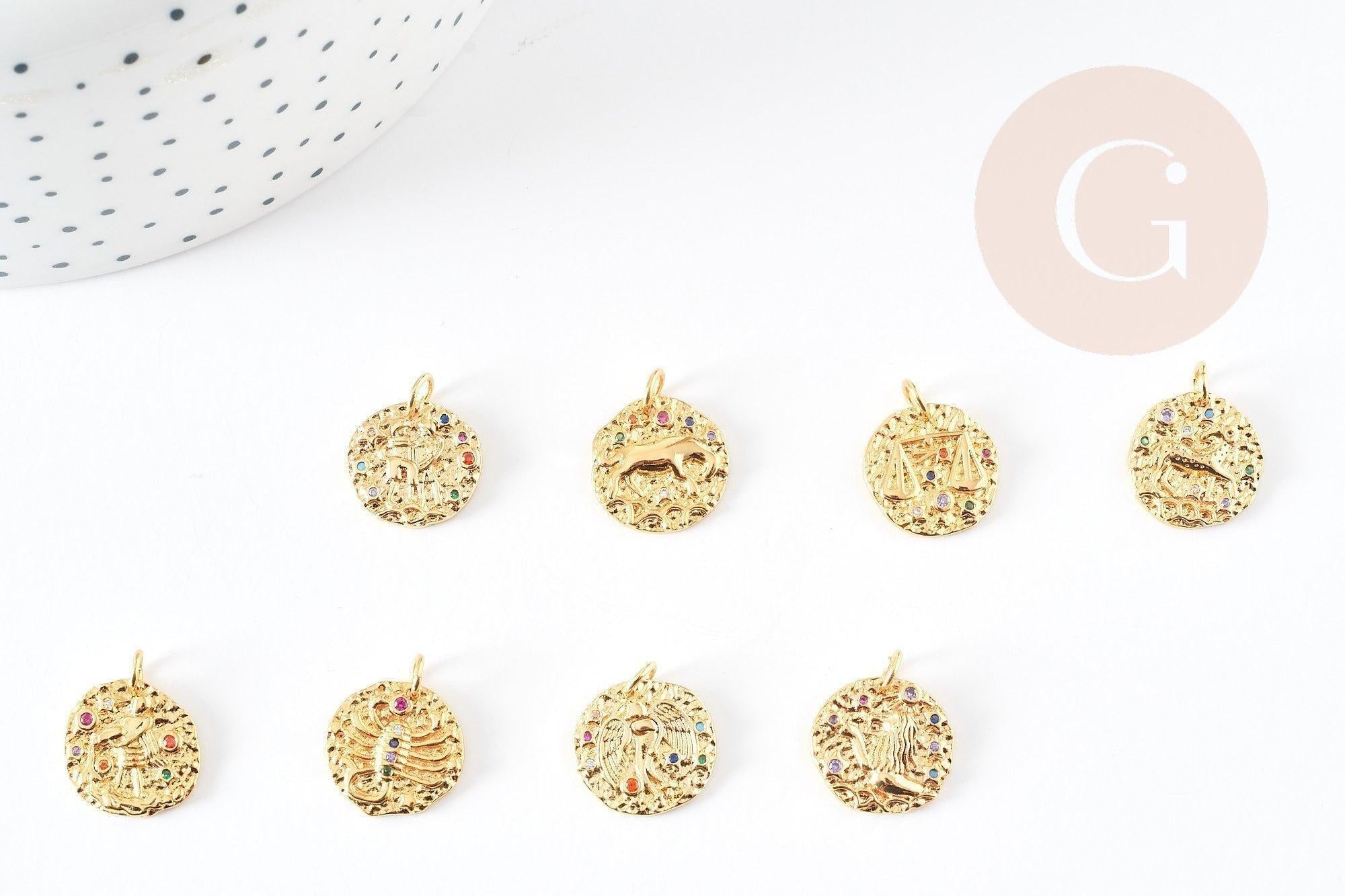Enamórate de uno de los dijes redondos de latón dorado representando un signo astrológico que será el elemento ideal para la creación de varios joyería de disfraz .