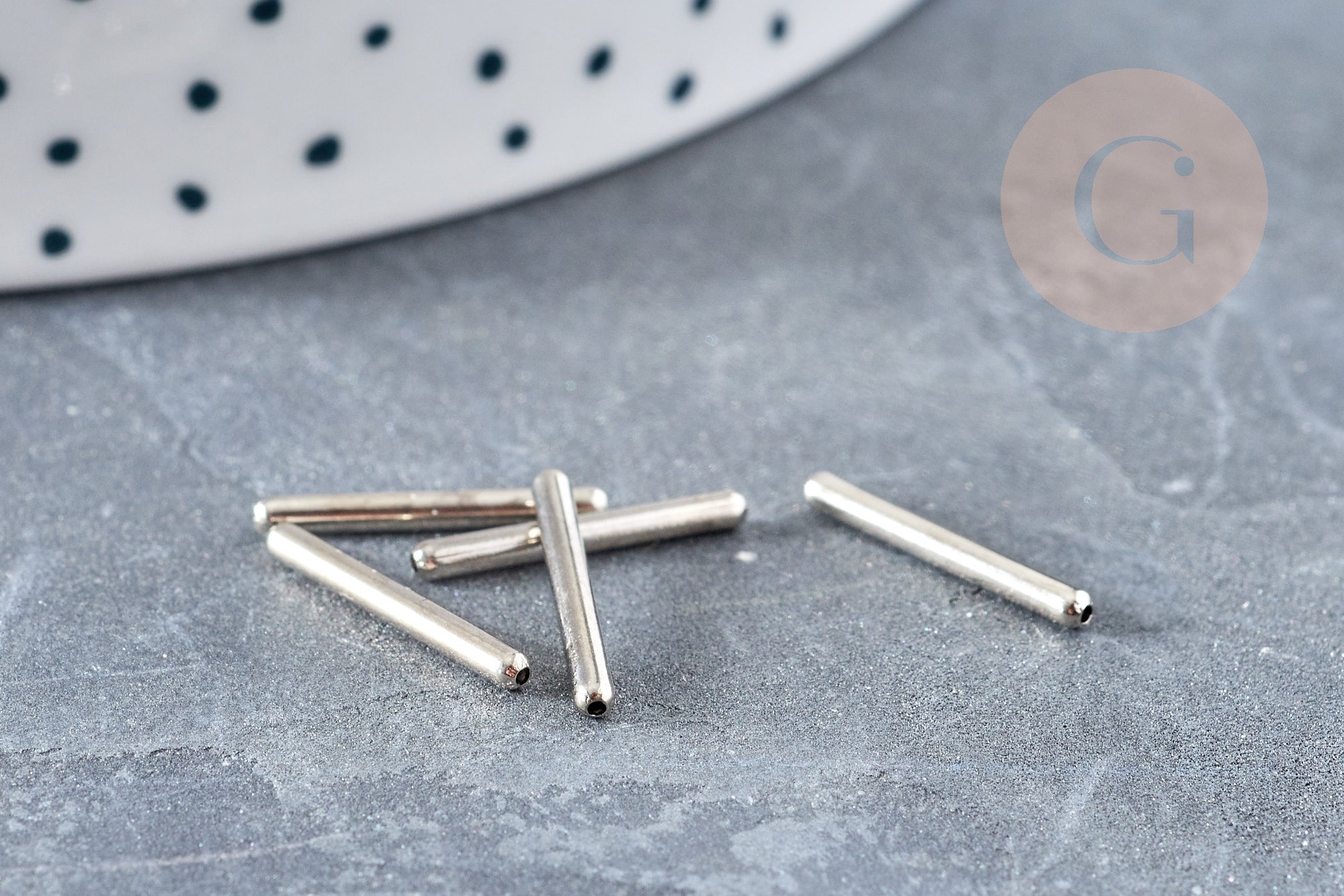 EP Encanto de tubo perforado de latón plateado, fabricación de joyas, encanto de latón, latón plateado, 19 mm