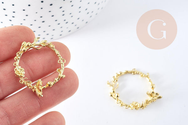Este colgante de latón en bruto tiene un diámetro de 38 mm y representa una magnífica corona de flores, creando un patrón delicado y refinado. Su aspecto crudo le da un aspecto rústico y auténtico, añadiendo un toque de carácter a tus creaciones.