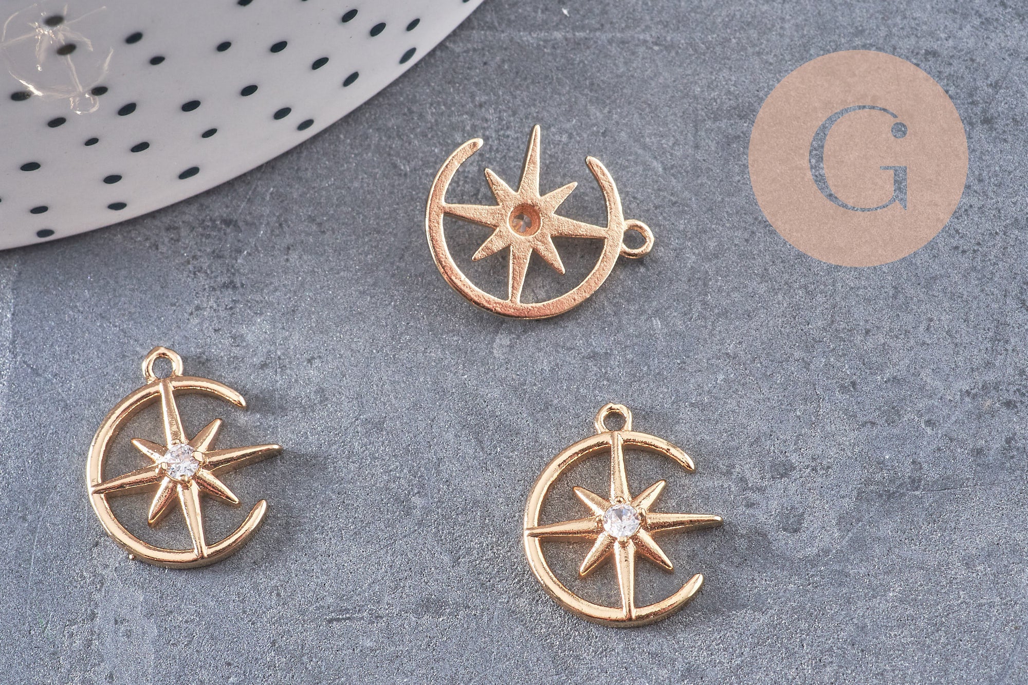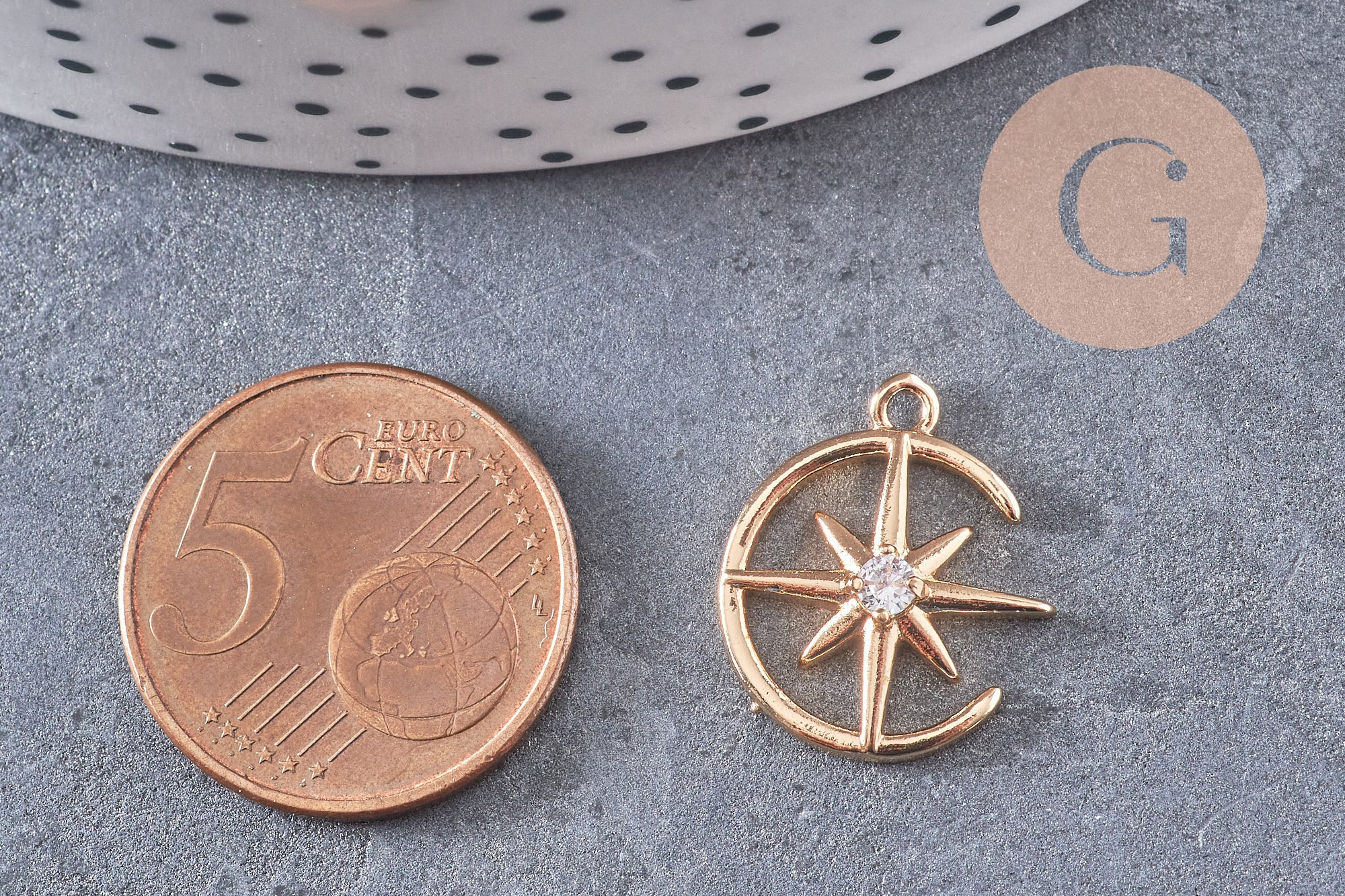 Colgante Estrella del Norte redonda de latón bañado en oro de 18 quilates con circonitas de 18 mm, un colgante de oro con cristales para la creación de joyas, x1 G5514