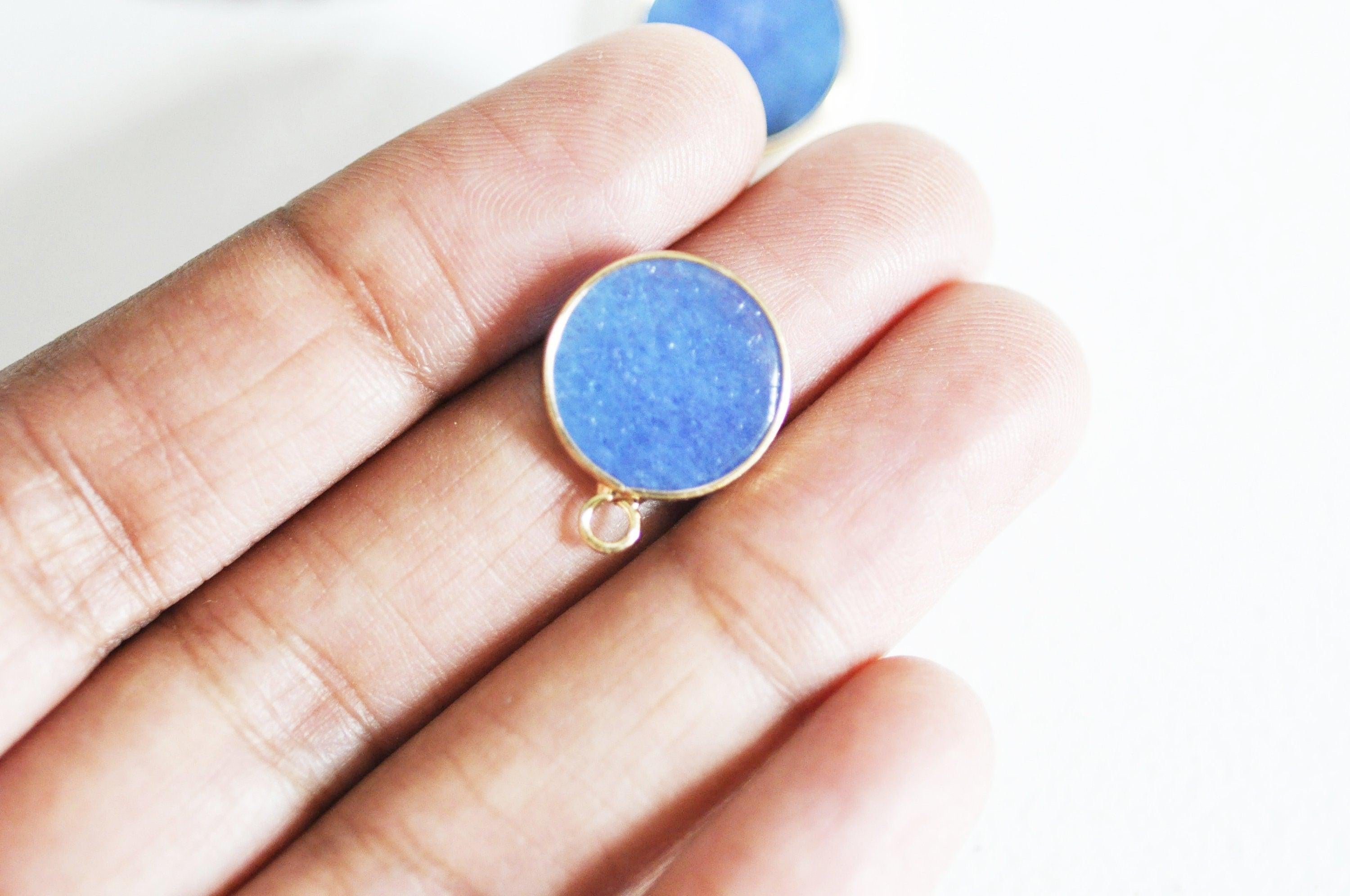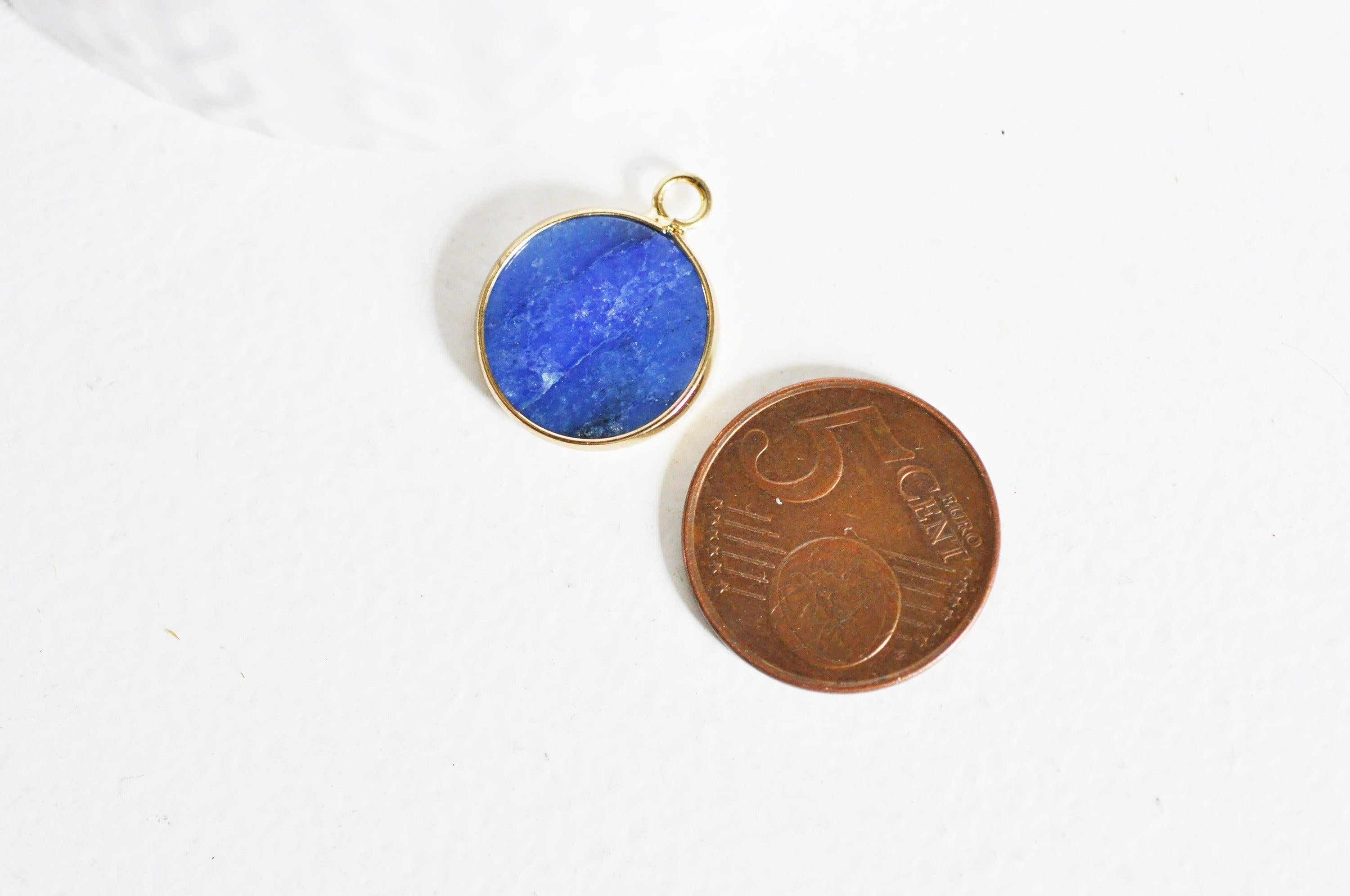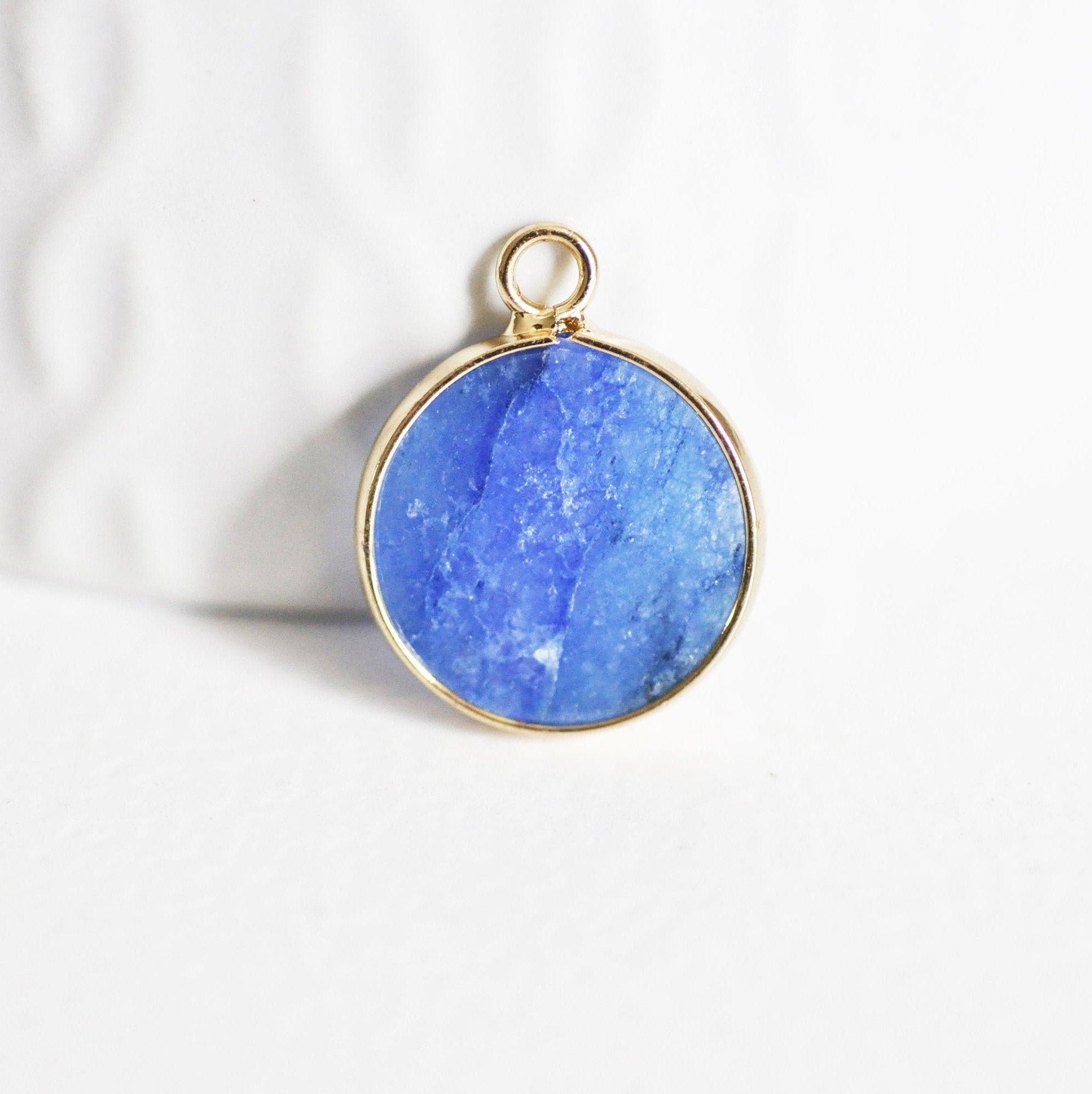 Colgante redondo de jade azul, suministros para manualidades, colgante de joyería, colgante de piedra, jade natural, colgante redondo, 20,5 mm