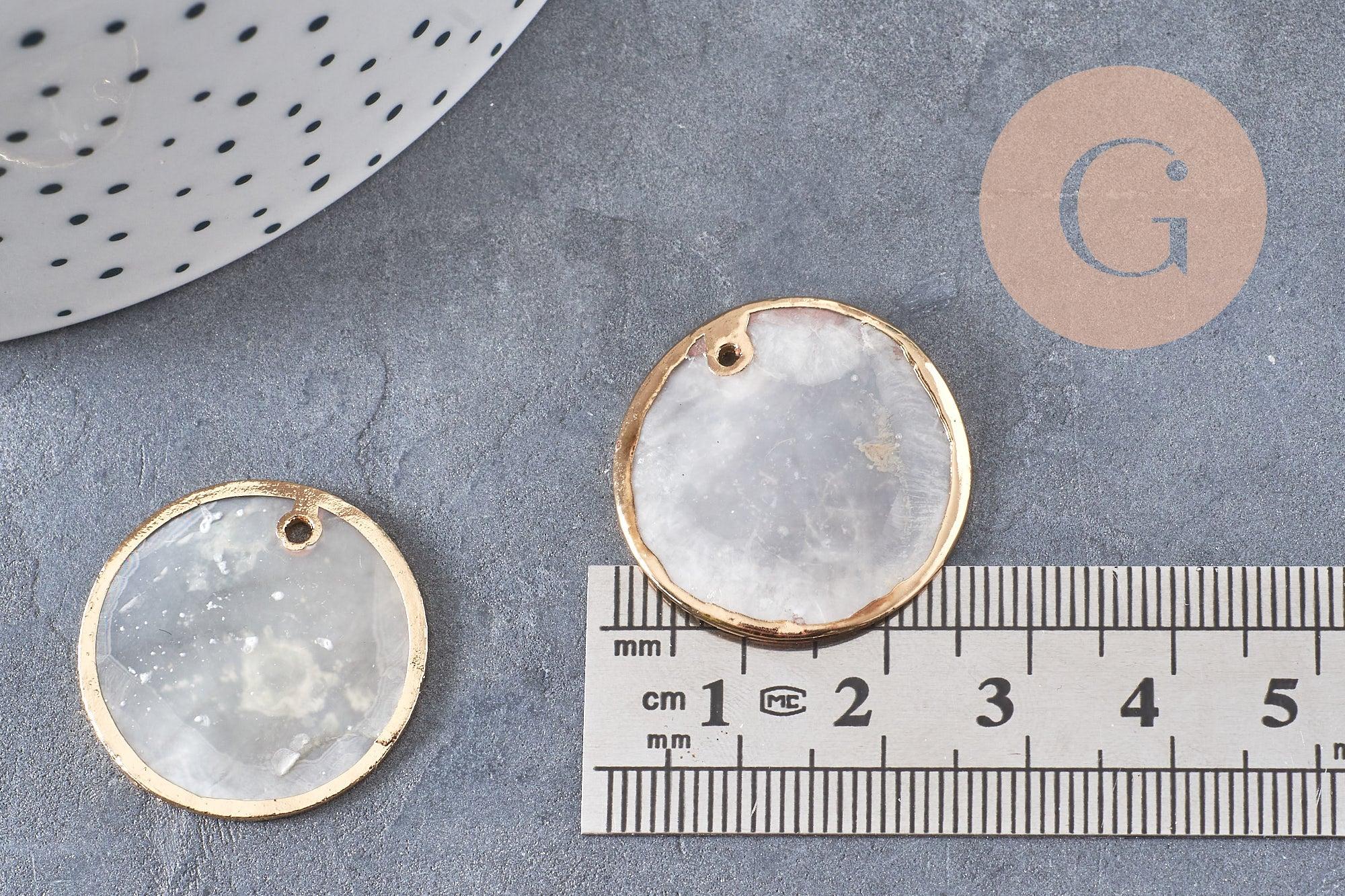 Juego de 2 colgantes redondos de oro conchas naturales en nácar blanco 25mm G2434.