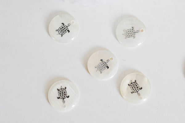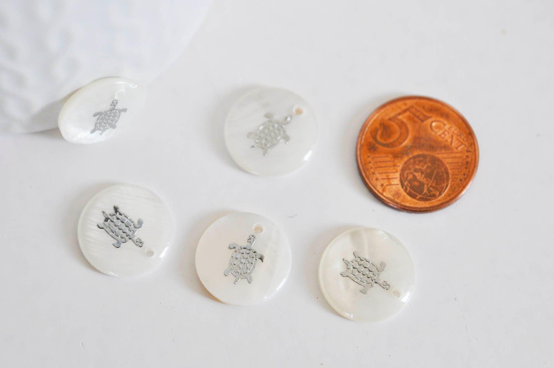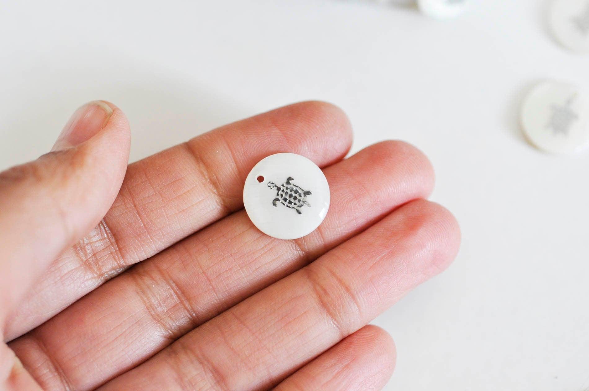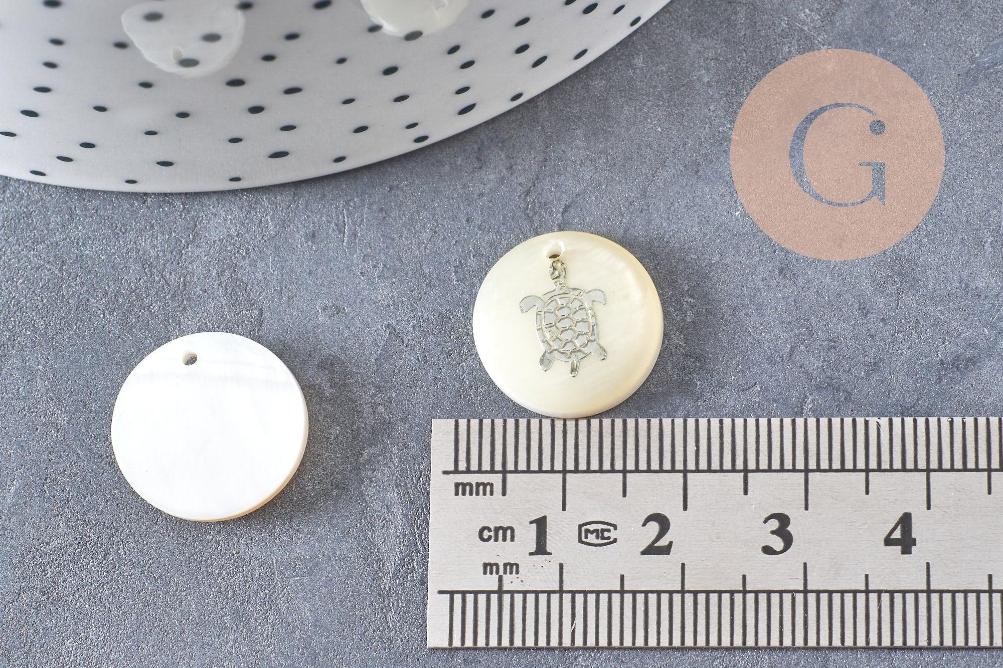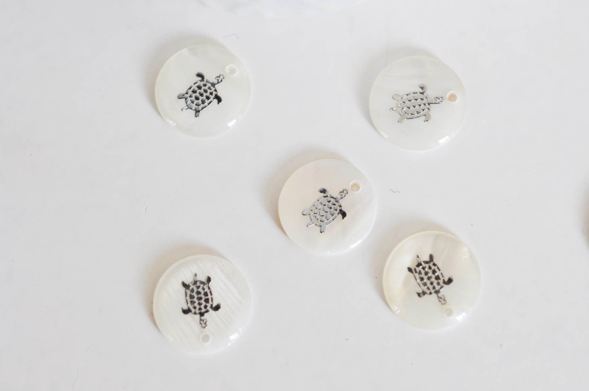 Colgante de tortuga de nácar redondo, suministro creativo, colgante de tortuga, concha blanca, concha natural, creación de joyas, 16 mm, 1 agujero
