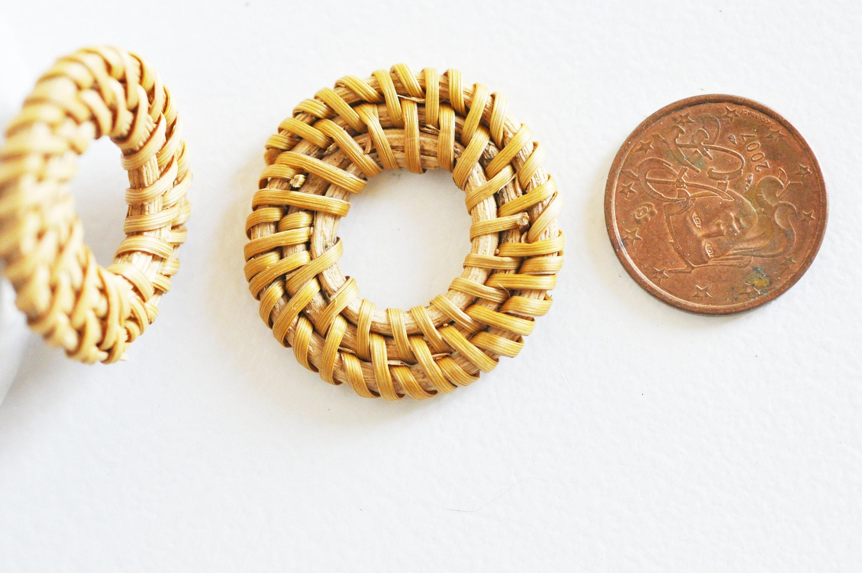 Colgantes de trenza de mimbre natural, de apariencia muy sencilla, sin barnizar pero que puedes personalizar con pintura, papel decorativo, en la creación de tus joyas con tendencia natural y boho.