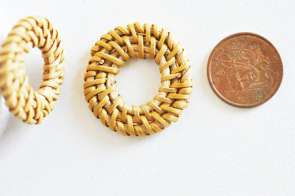 Colgante redondo de mimbre trenzado natural, cuenta de madera, cuenta de mimbre, creación de joyas, cuentas geométricas, 28-34mm, x2 G2951