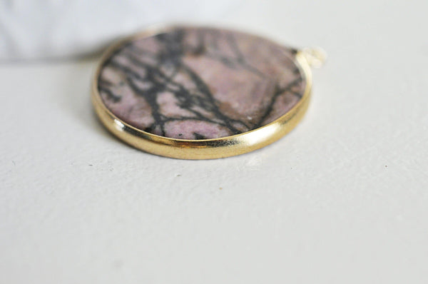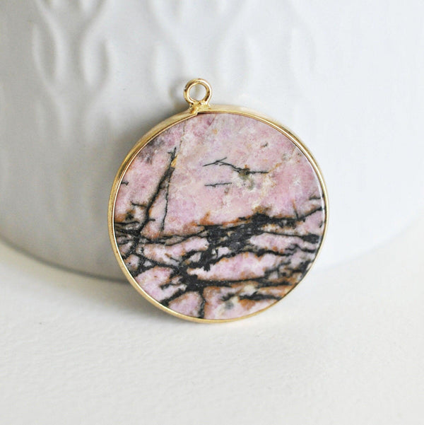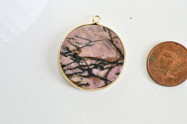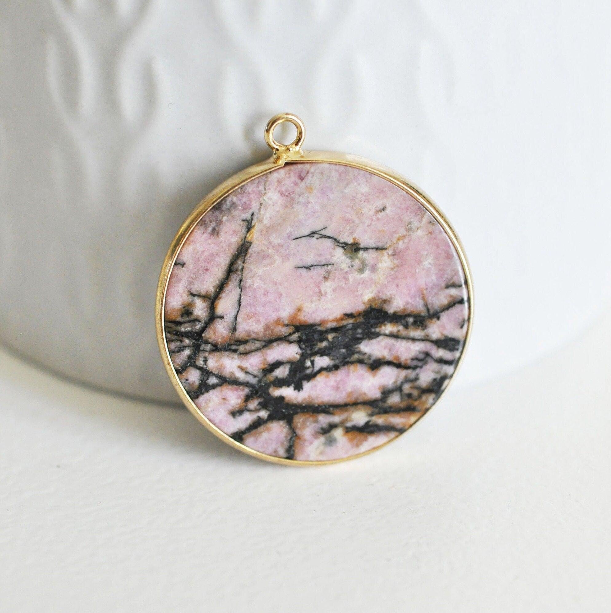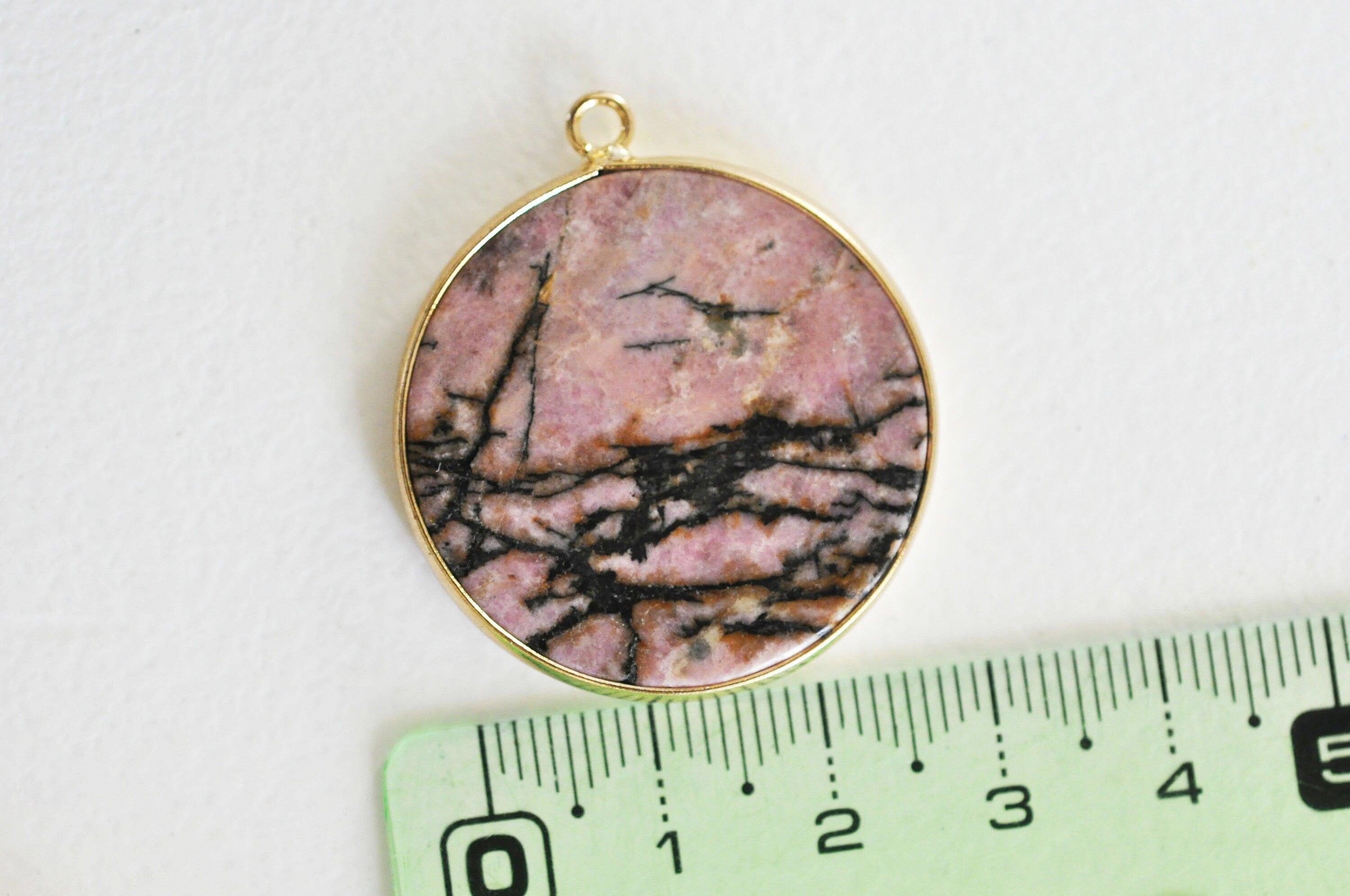 Colgante rodonita redonda, colgante de joyería, colgante de piedra, rodonita natural, colgante rodonita, 35mm, unidad