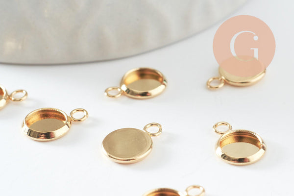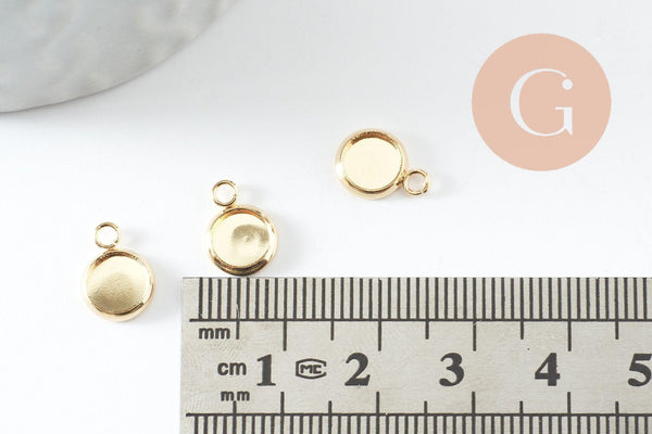 Pendentif rond support pour cabochon 6mm acier 304 inoxydable doré, x2 (G9858)