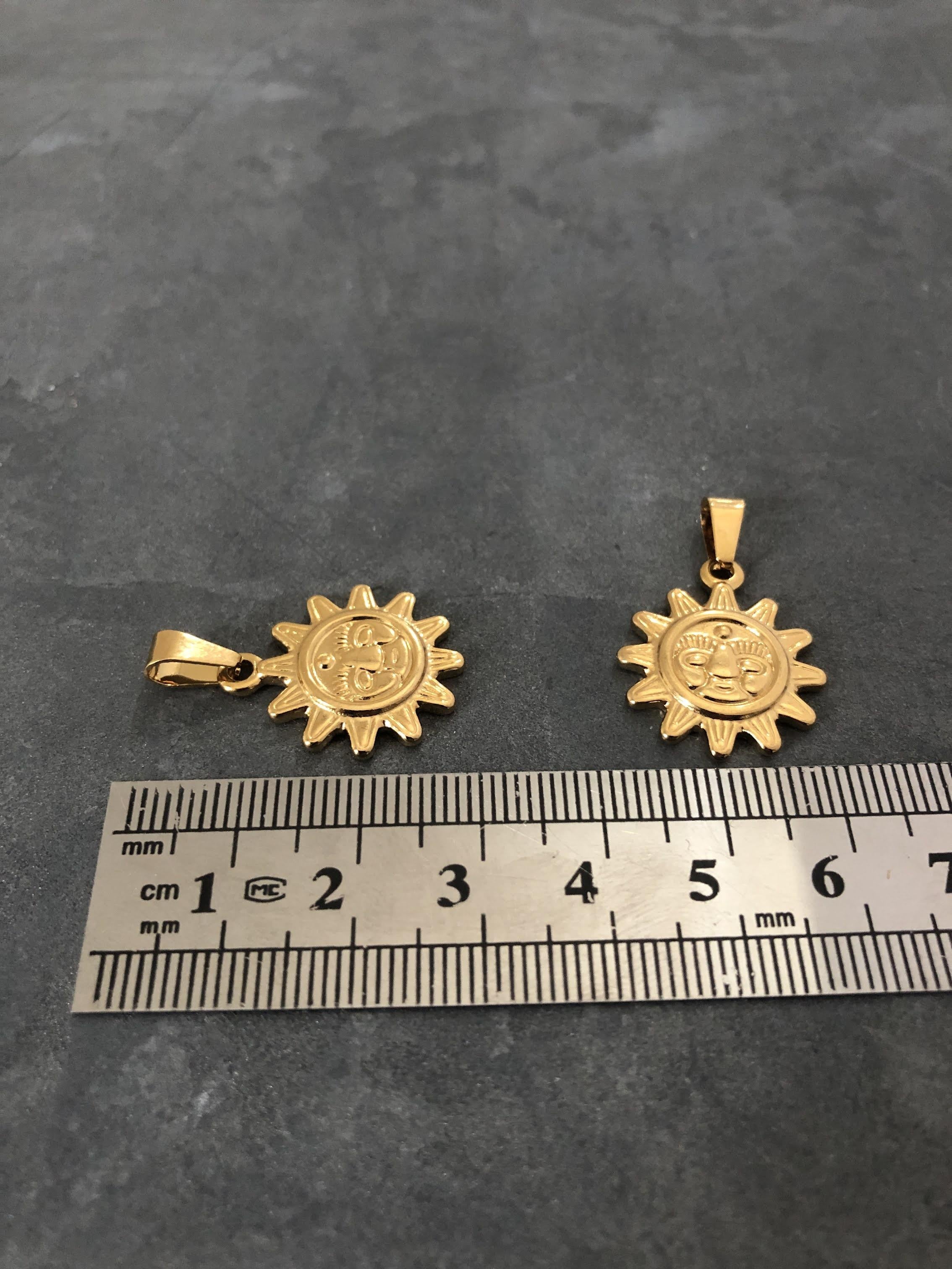 Colgante sol de acero dorado, colgante horóscopo dorado, amuleto de la suerte en acero dorado, colgante sol, 22mm, cada uno