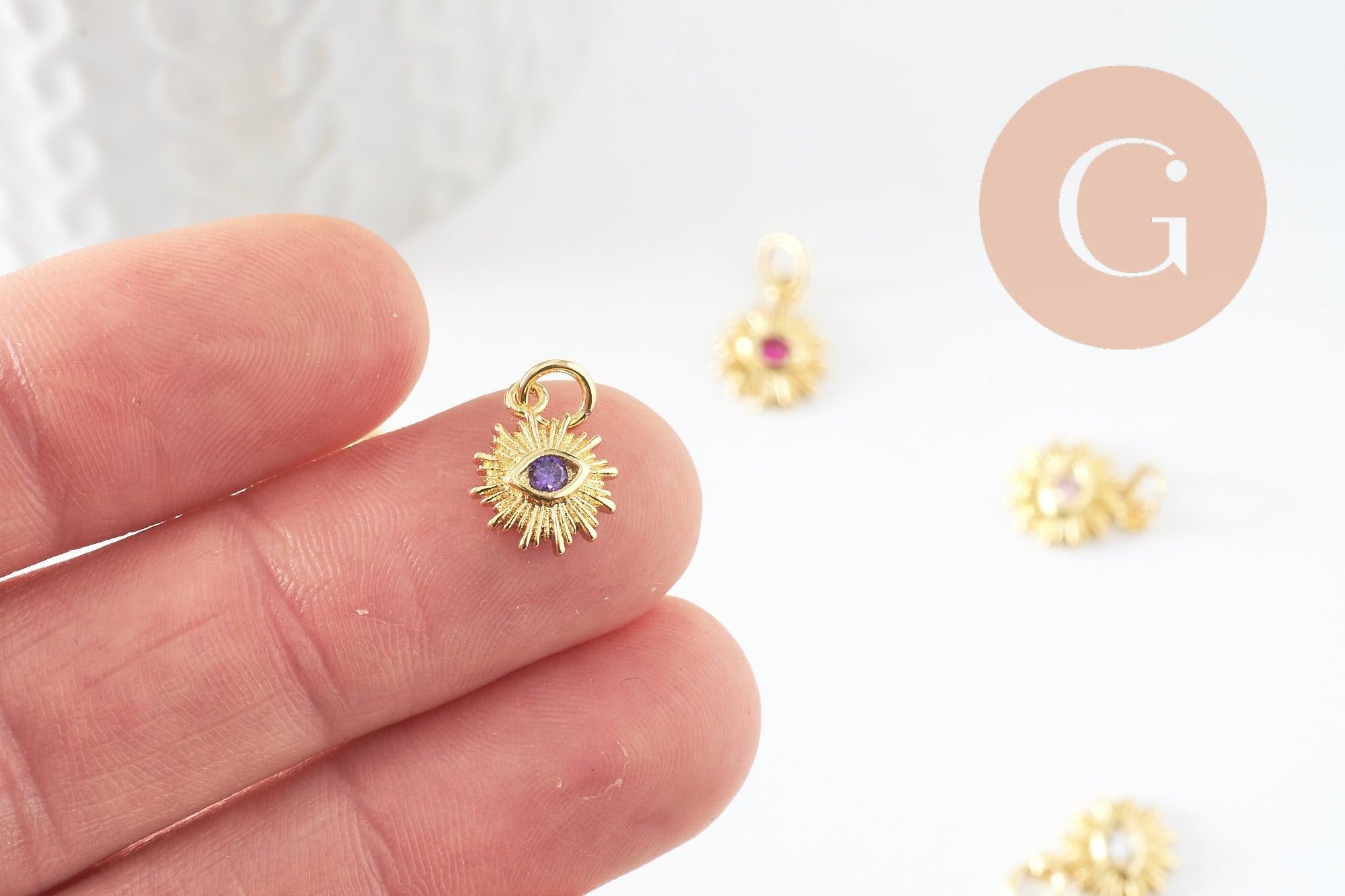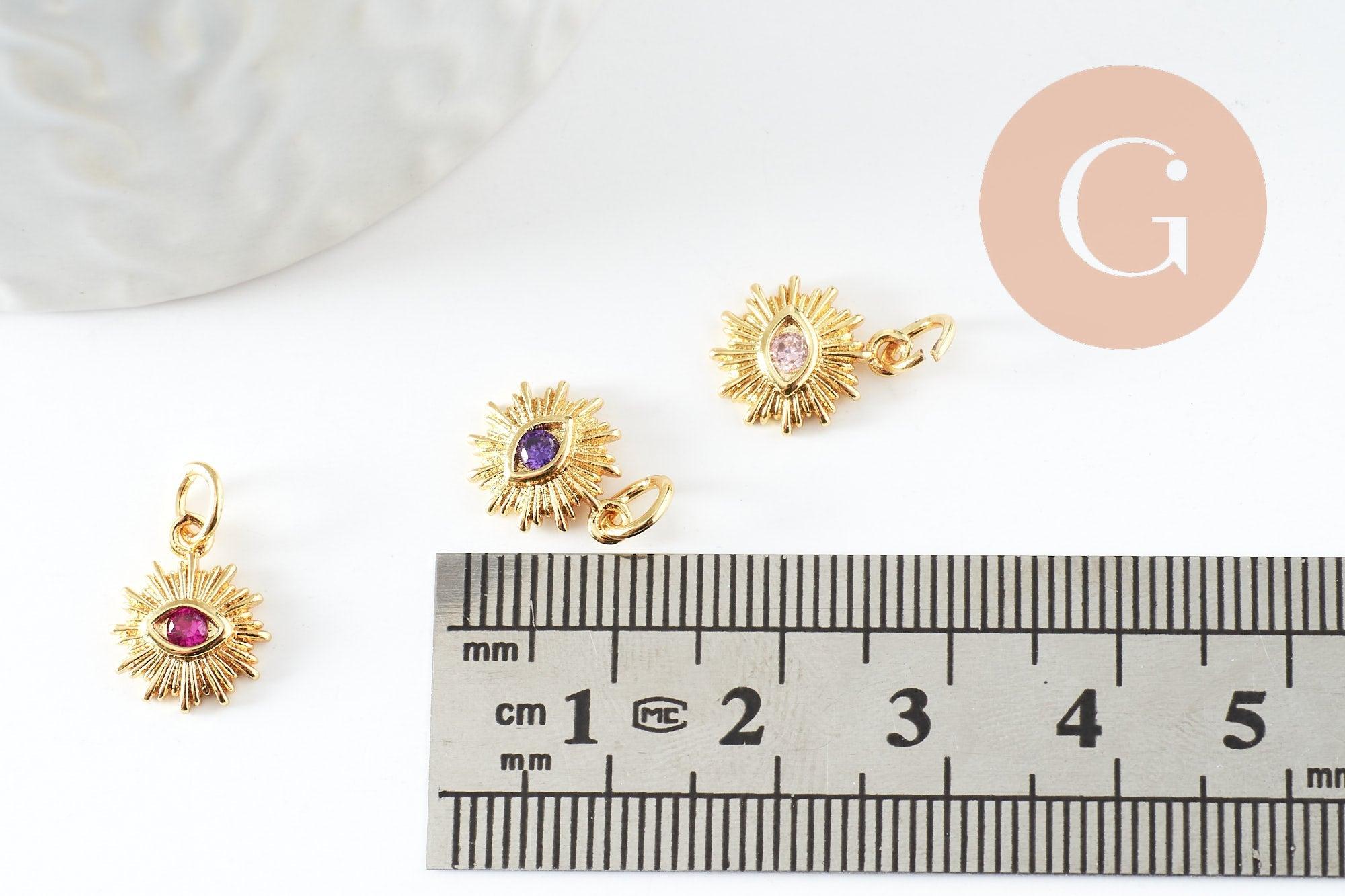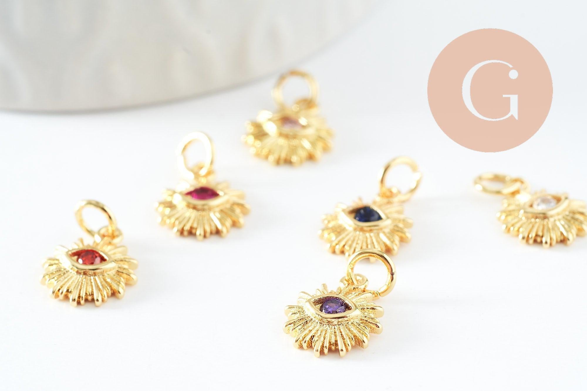 Colgante de sol con circonitas de latón y oro de 18 quilates, colgante de cristal para crear joyas de la suerte para mujeres en circonitas, 12,5 mm, cada uno