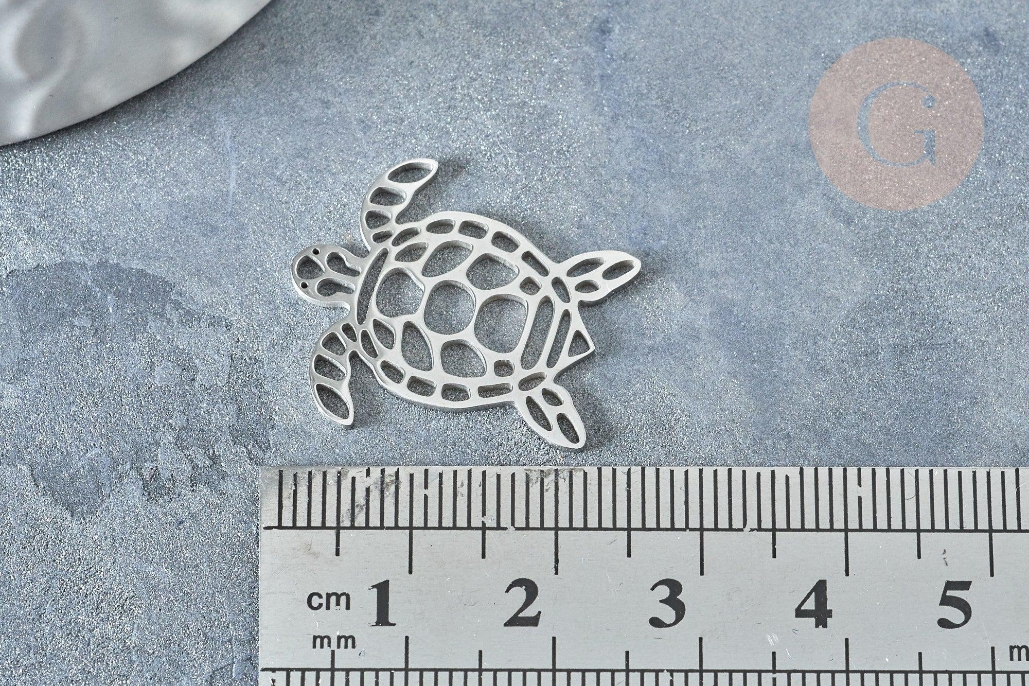 Un delicado colgante de tortuga de acero inoxidable platino, ¡un colgante tropical para usar en todos tus diseños de joyería!