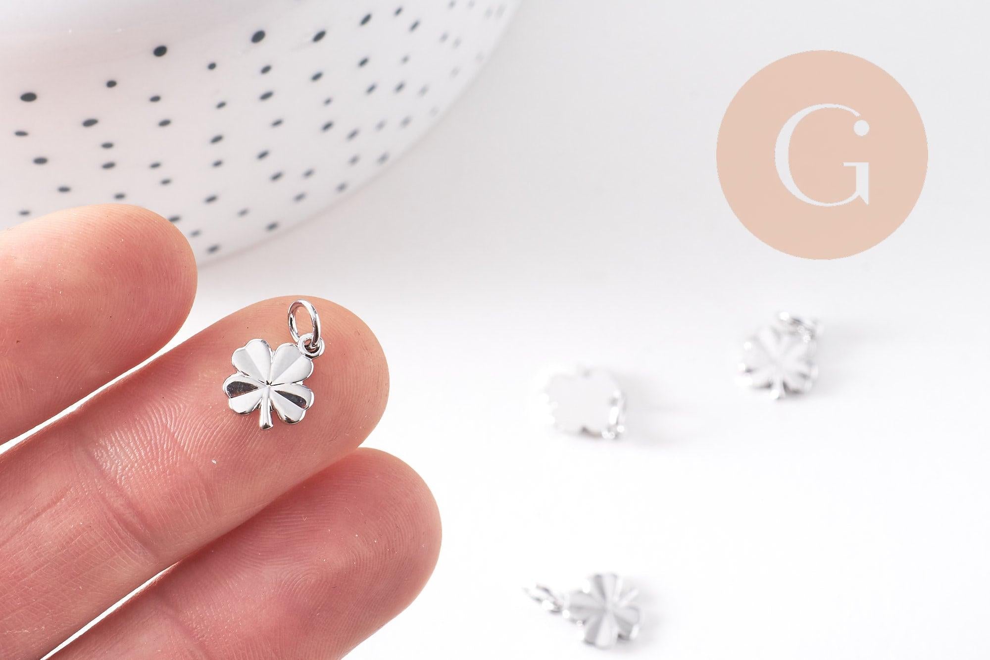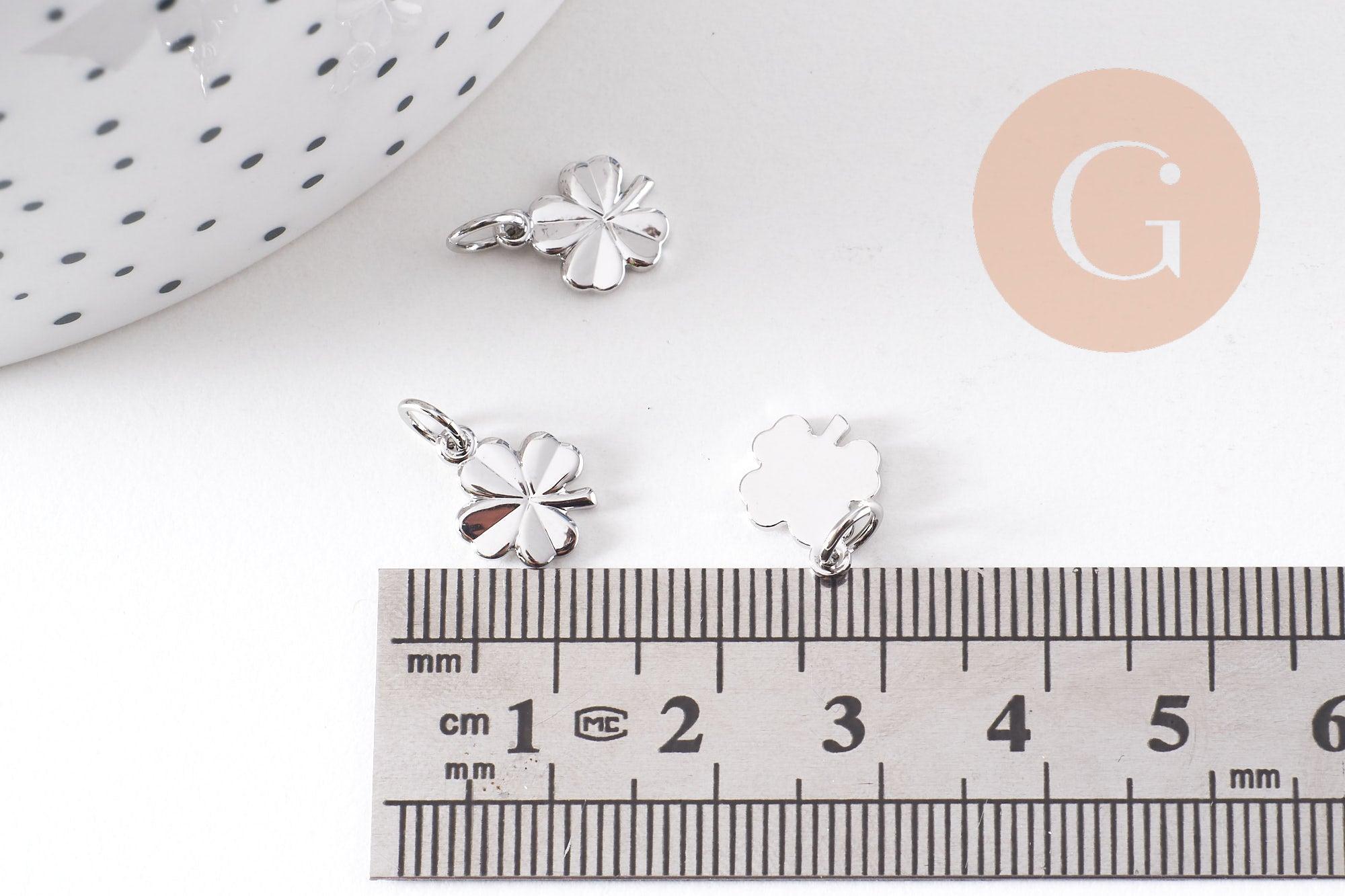 Un colgante de trébol de cuatro hojas de latón platino para añadir un toque de suerte a tus creaciones de joyería DIY. Símbolo universal de felicidad y prosperidad, este delicado colgante es perfecto para joyería fina y elegante.