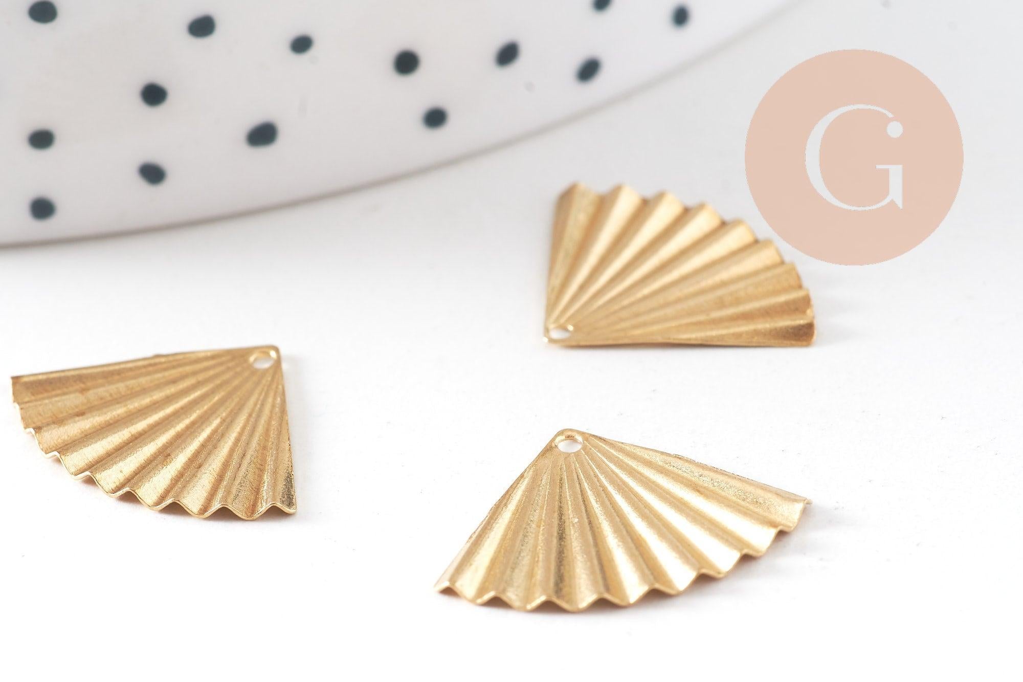 Pendentif triangle éventail plié laiton brut, apprêt doré, sans nickel, Pendentif doré,19mm, x5 (G0115)