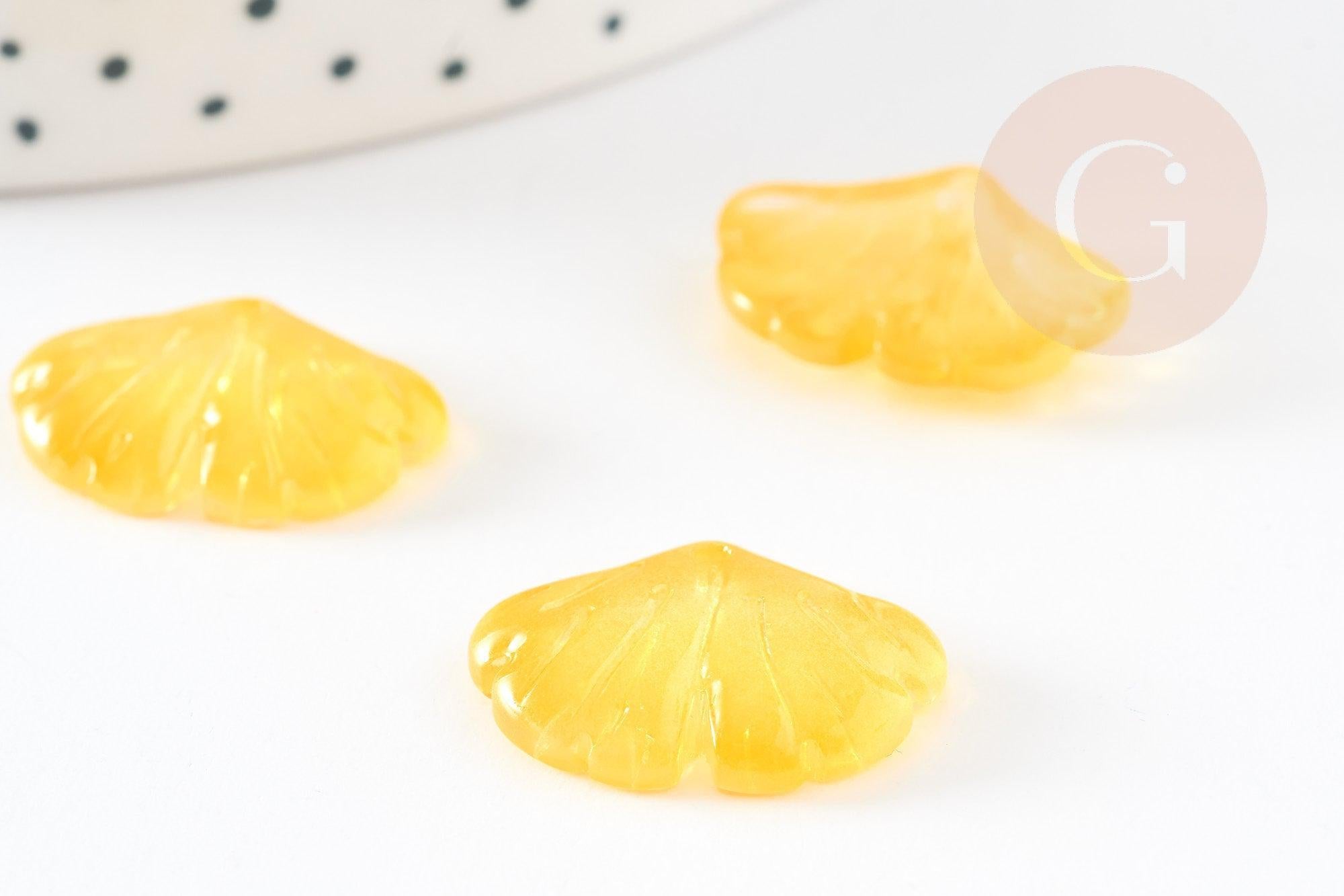 Un hermoso juego de colgantes de vidrio amarillo con forma de hoja de gingko, para hacer joyas de plantas, amuletos de la suerte y joyas para ofrecer.