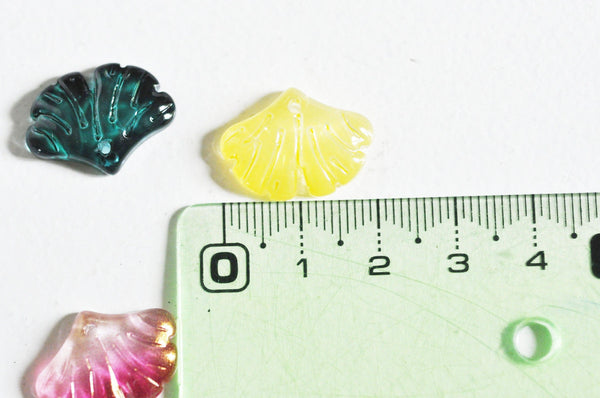 Colgante de hoja de gingko de vidrio multicolor 15x20mm, colgante de vidrio, 15x20mm, x10 (G3388)