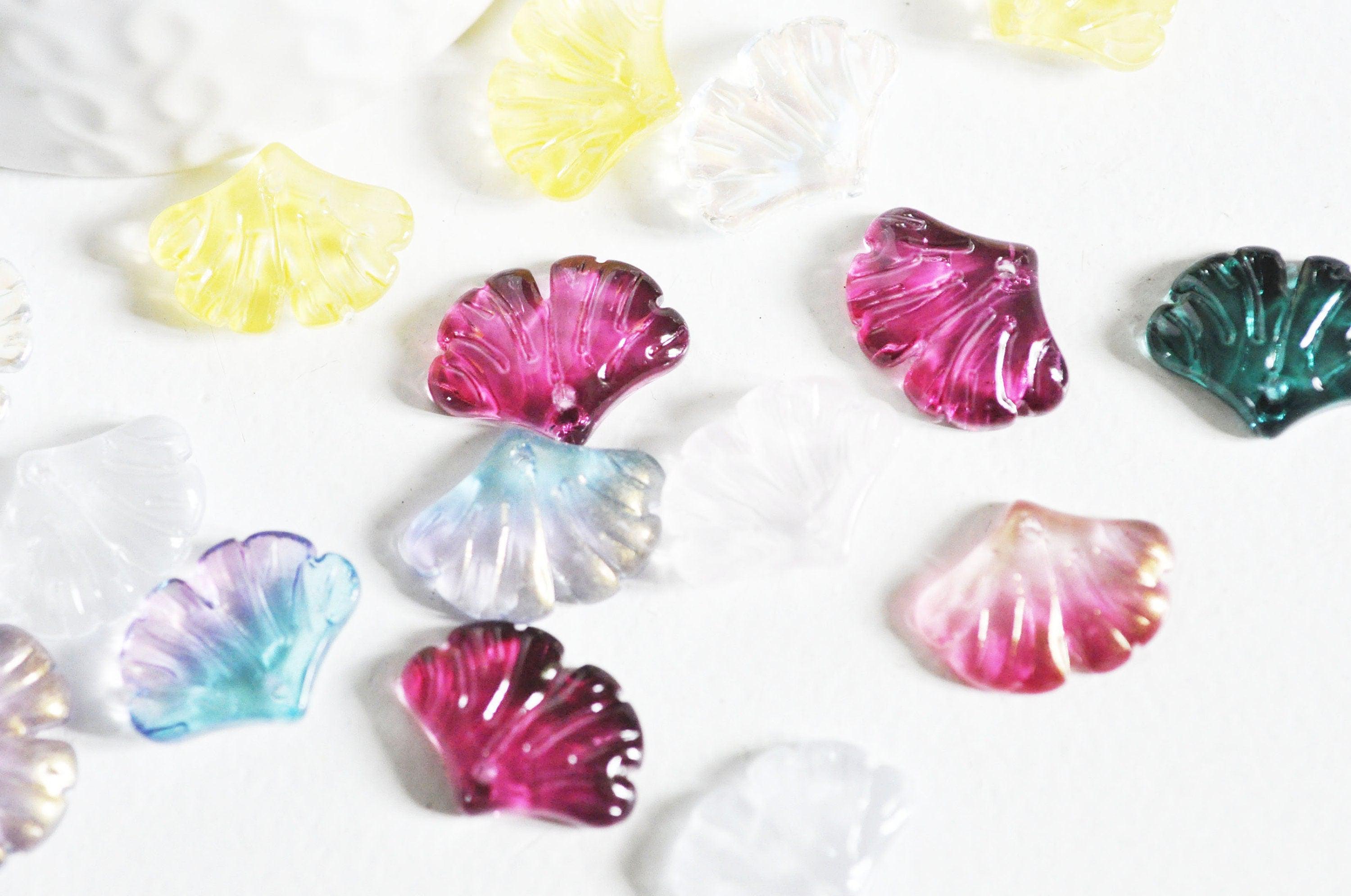 Un bonito conjunto de colgantes de vidrio multicolor en forma de hoja de gingko , para realizar joyas vegetales, gri-gris y joyas para ofrecer.