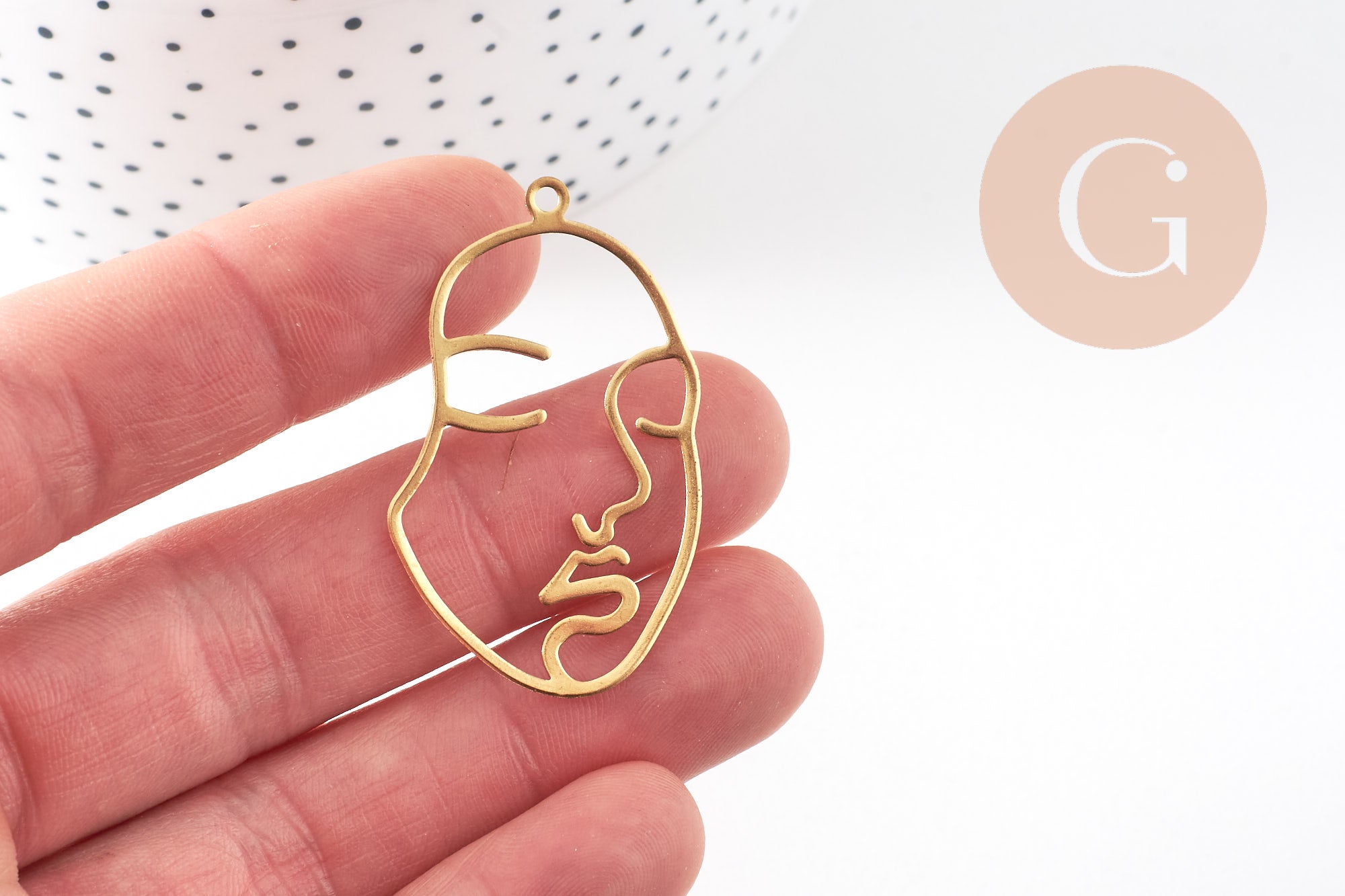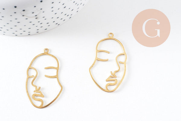 Colgante de latón en bruto con cara, suministros de joyería, latón en bruto, colgante minimalista, joyería moderna, 43 x 26 mm