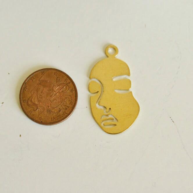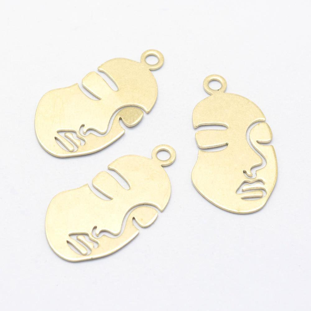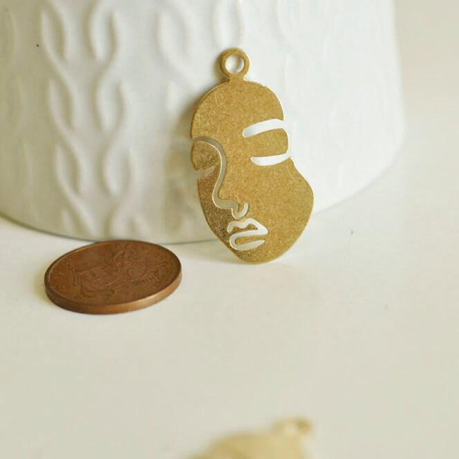 Colgante de latón crudo con cara, accesorios de joyería, colgante minimalista, joyería moderna, 33,5 mm