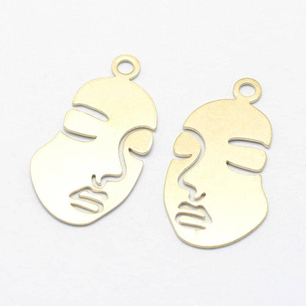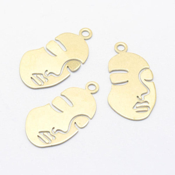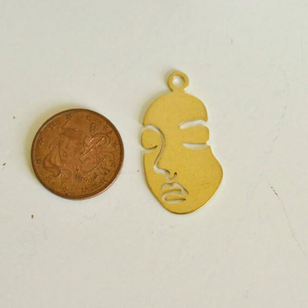 Colgante de cara de latón crudo, suministros de joyería, latón crudo, colgante minimalista, joyería moderna, x1 33.5mm-G1224