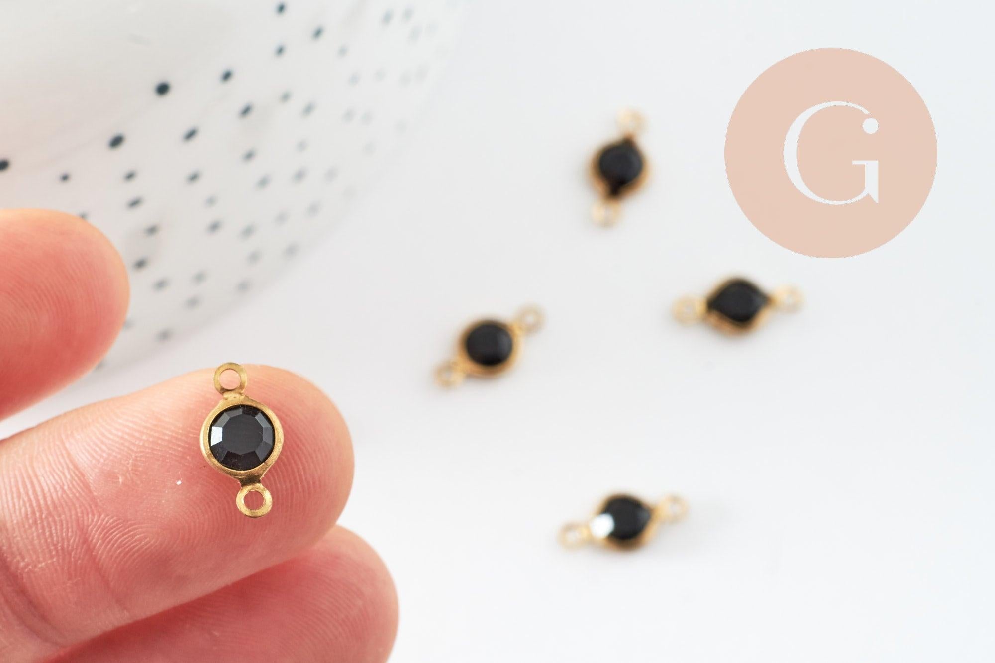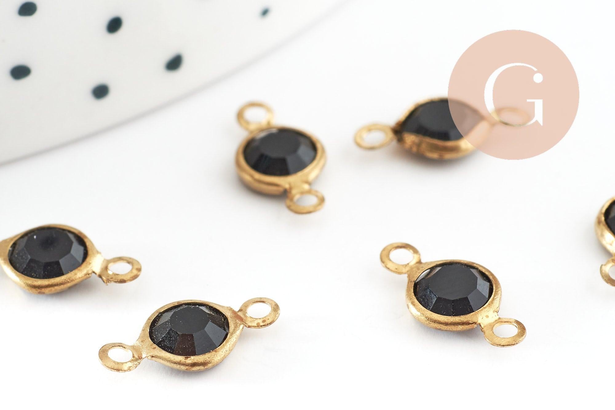 Colgantes de conector redondo de latón crudo, cristal negro, conectores de latón, cristal negro, 6 mm, x10 G0374