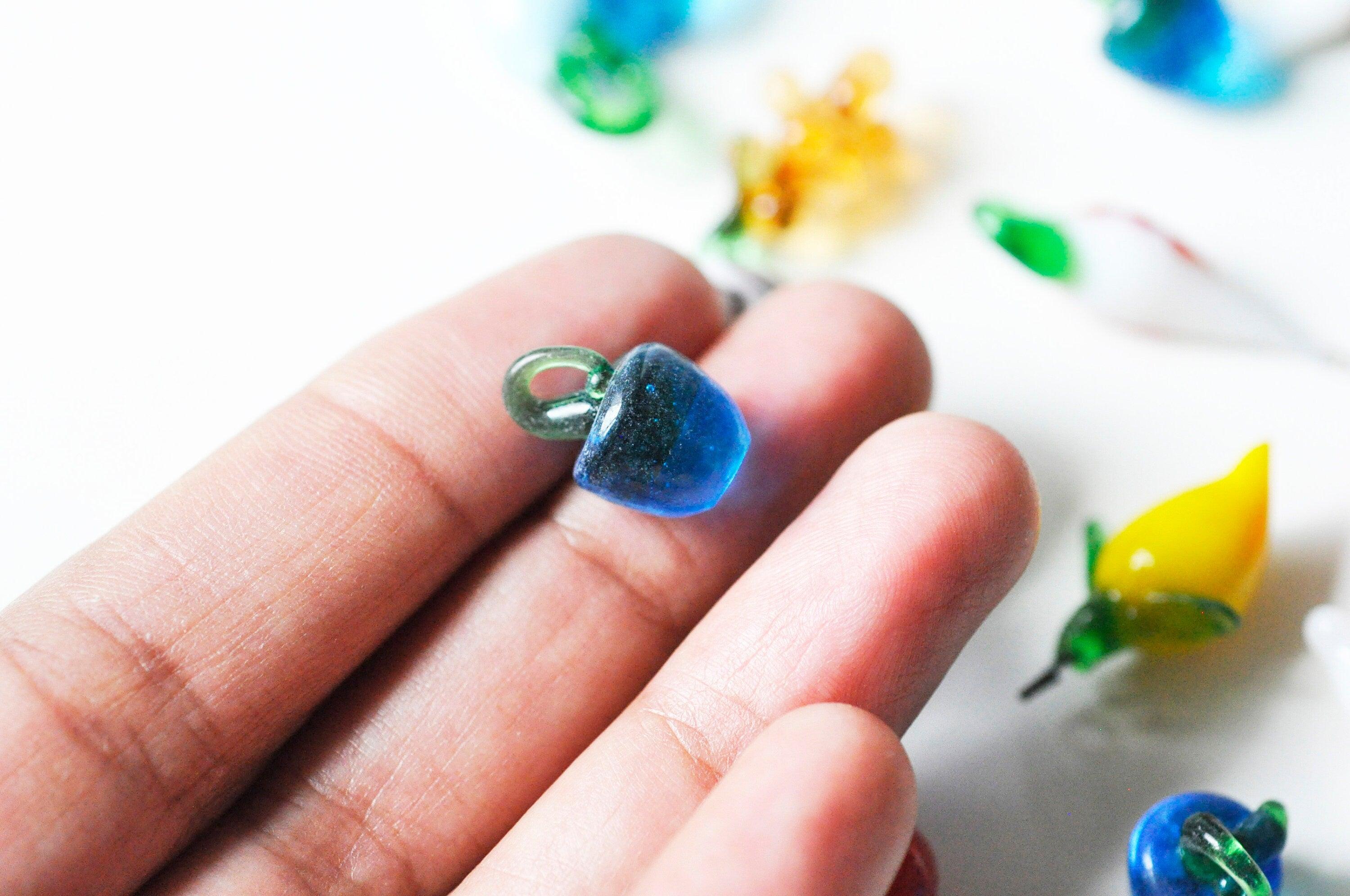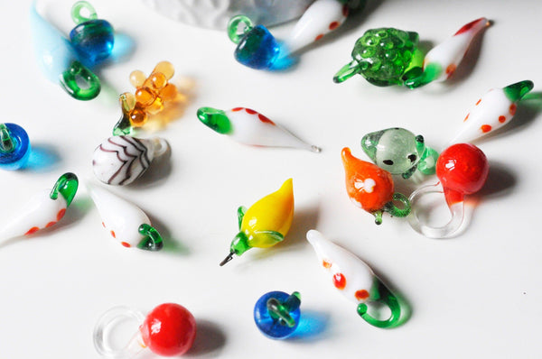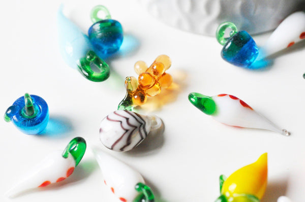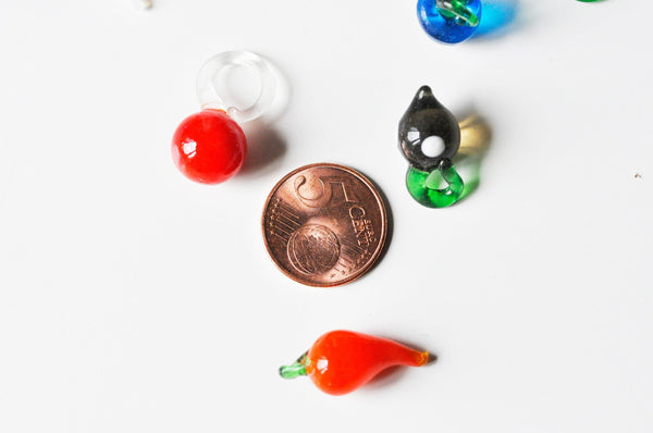 Un juego de colgantes de frutas de vidrio hechos a mano para colgar de sus aros, collares y otros accesorios o joyas.