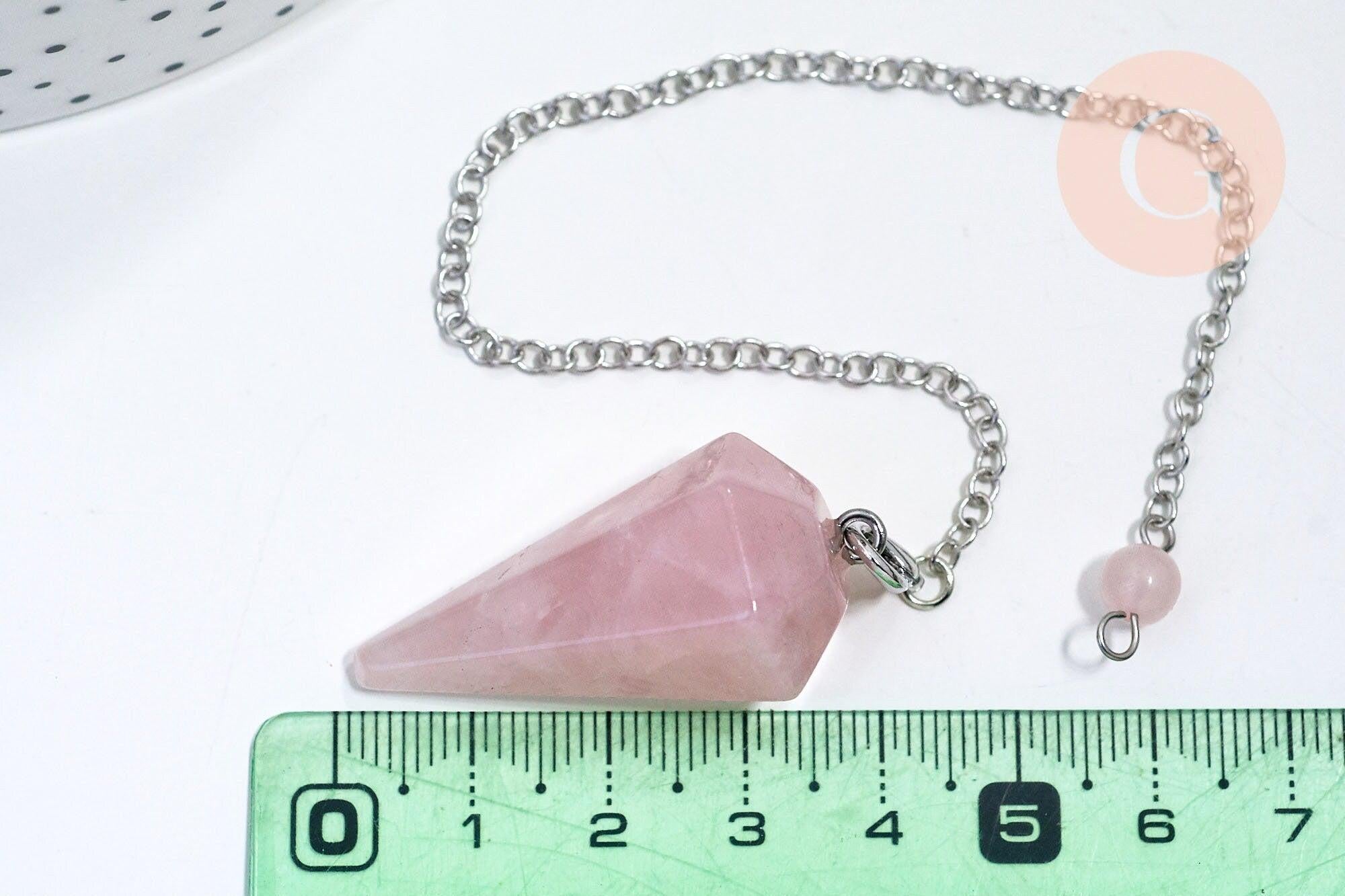 Péndulo radiestesia Cadena de plata de cuarzo rosa natural, péndulo magnetismo, litoterapia, creación de joyas, 23cm, unidad