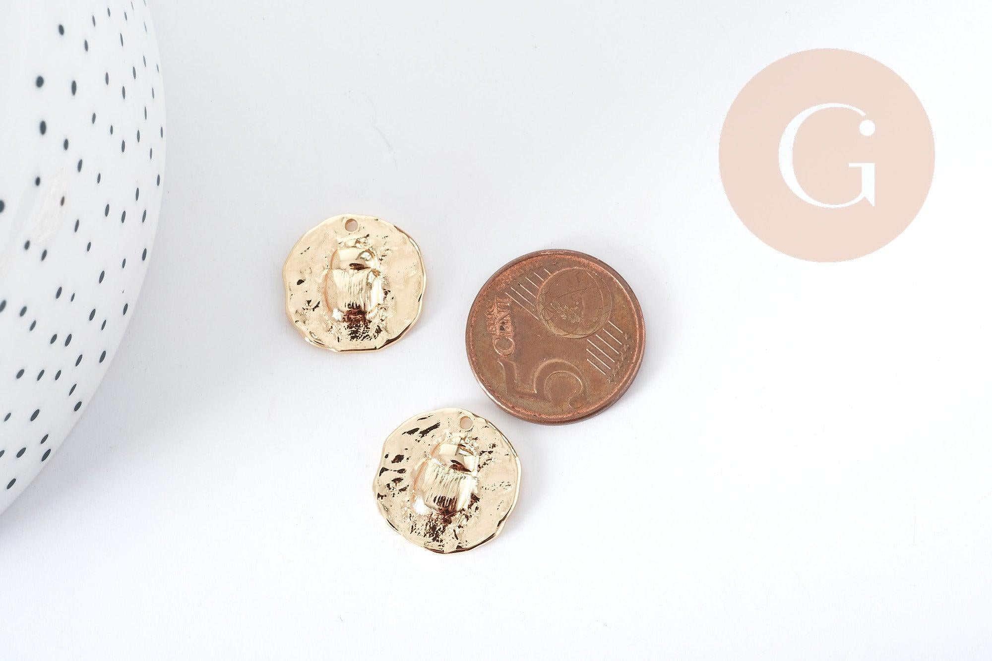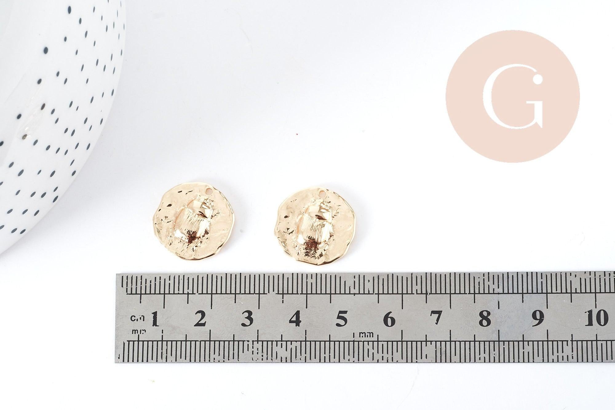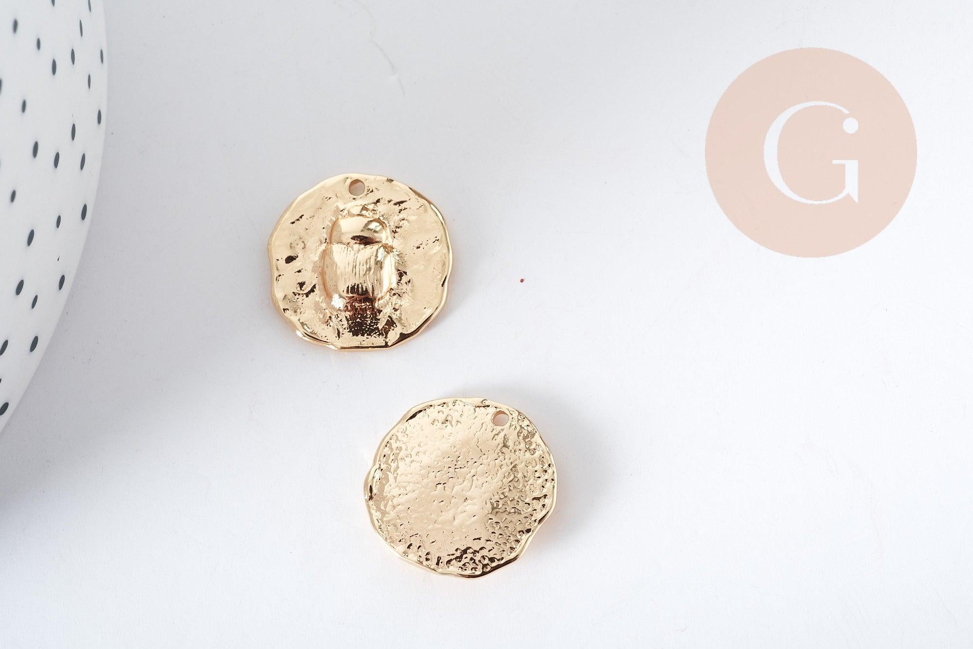 Medalla Escarabajo redonda de latón bañado en oro de 18 quilates 17 mm, creación de joyería de la suerte x1 G9020