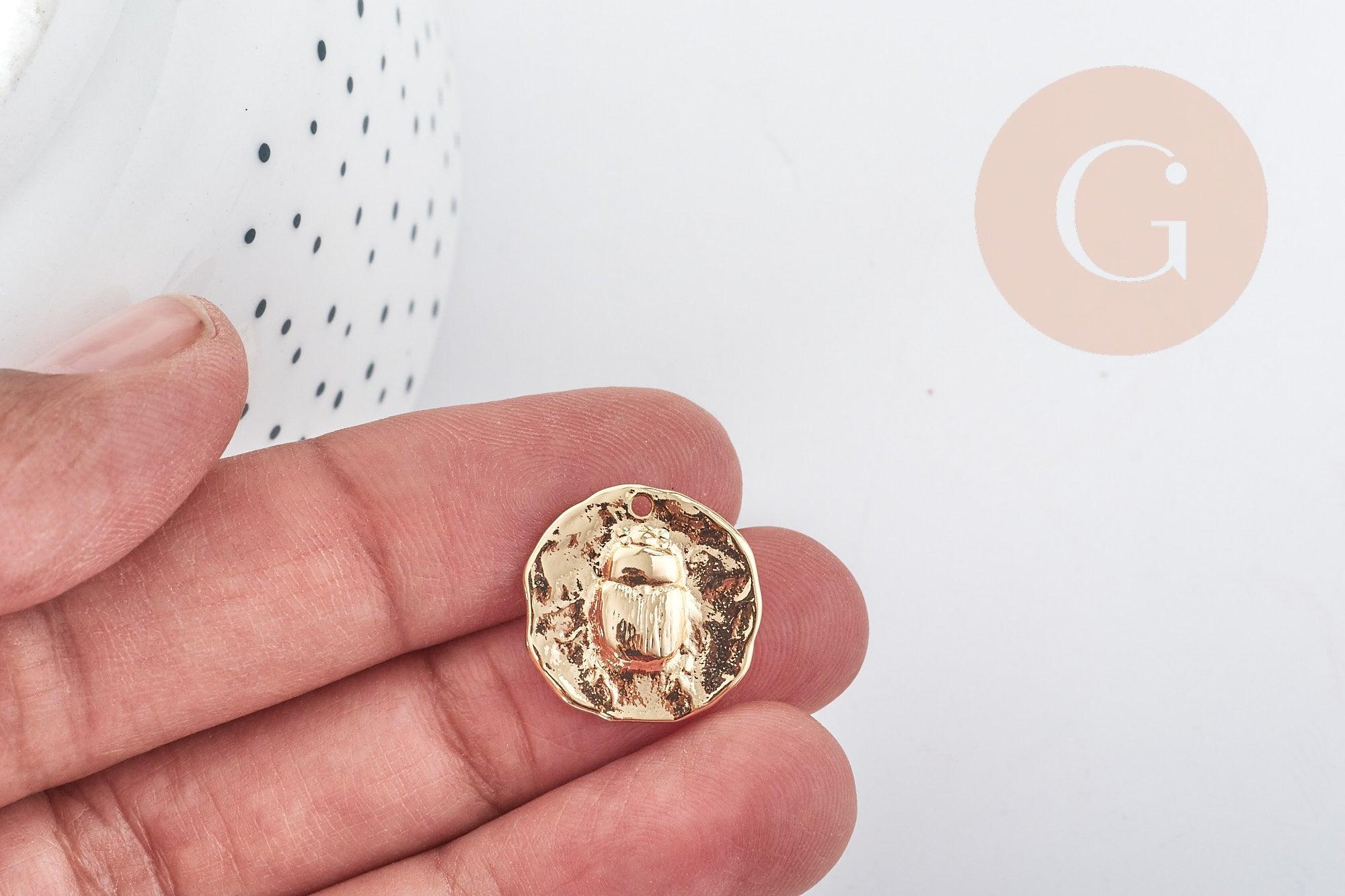 Déjate seducir por esta medalla de escarabajo . Éste es de latón bañado en oro de 18 quilates , una buena calidad para realizar muchas piezas de bisutería.