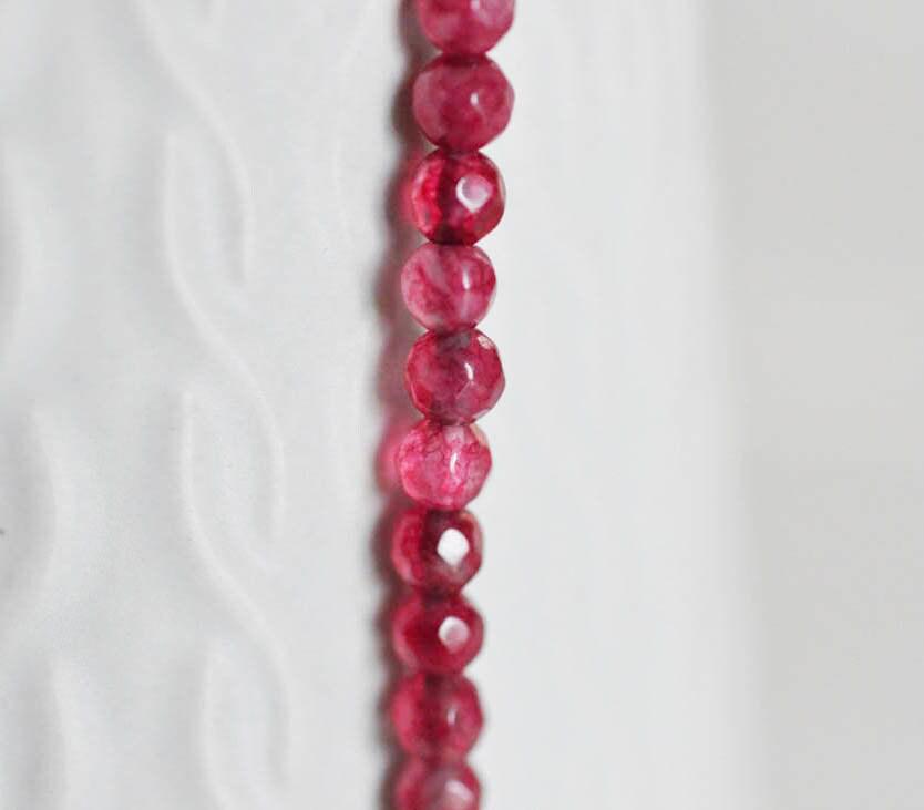 EP Cuenta de ágata natural teñida de rojo magenta 4mm facetada, x1 hilo de 35cm - G07