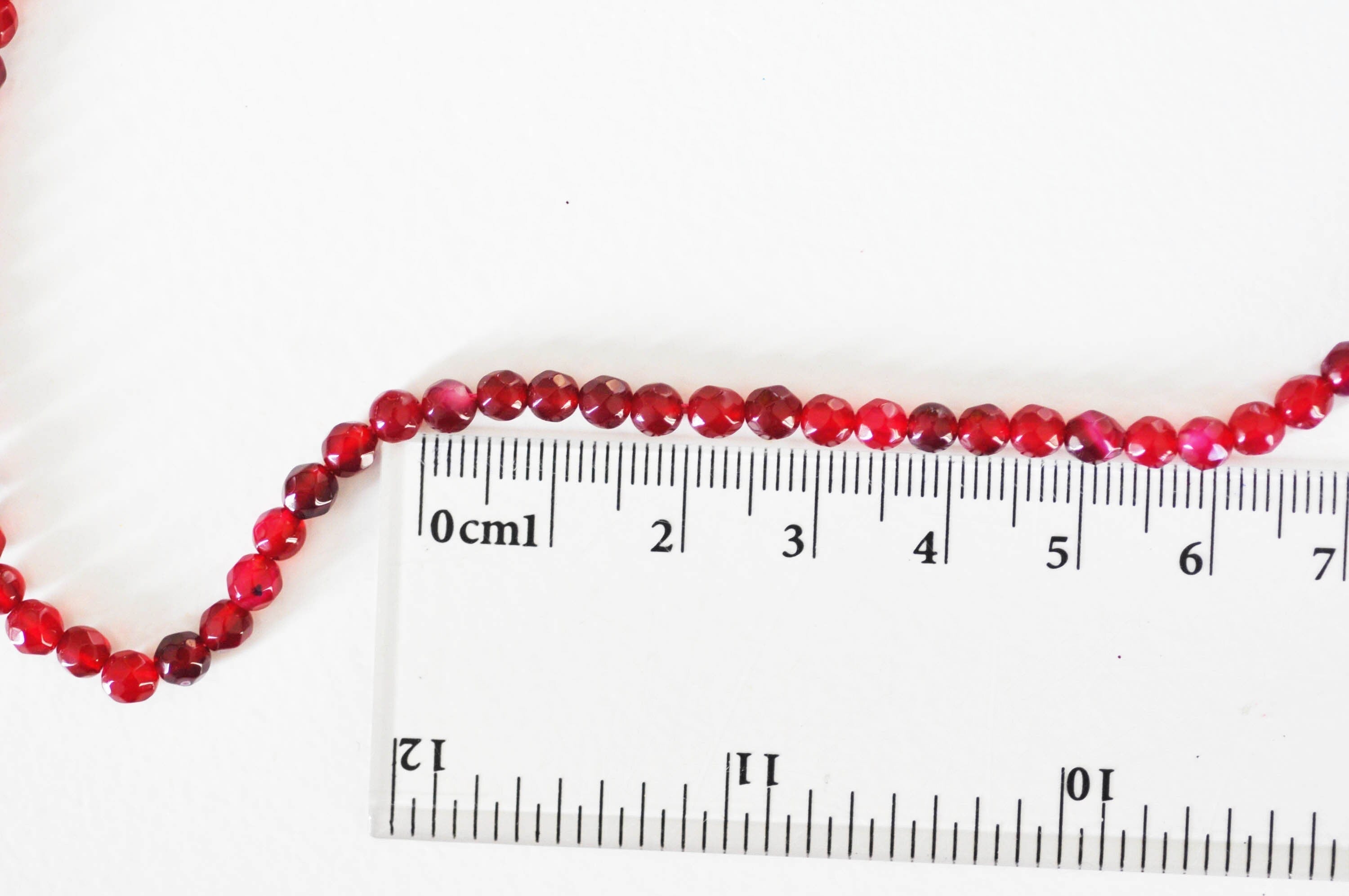 Cuentas de ágata roja magenta, suministros creativos, cuentas de ágata, piedra natural, ágata natural, cuentas de piedra, cuentas facetadas, 4 mm, tira de 90 cuentas Diámetro 4 mm Agujero: 0,8 mm Hilo de 35 cm - aproximadamente 90 cuentas de...