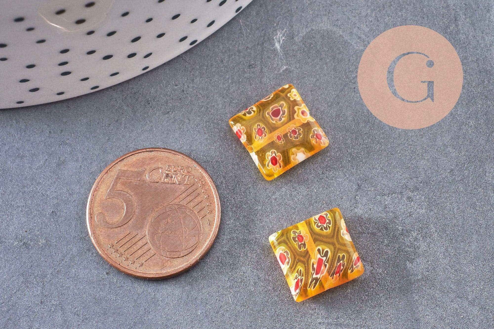 Cuentas de vidrio millefiori cuadradas, cuentas de vidrio, cuentas de vidrio hechas a mano, cuentas de joyería de verano, creación de joyas, 11 mm, x5 (G5366)