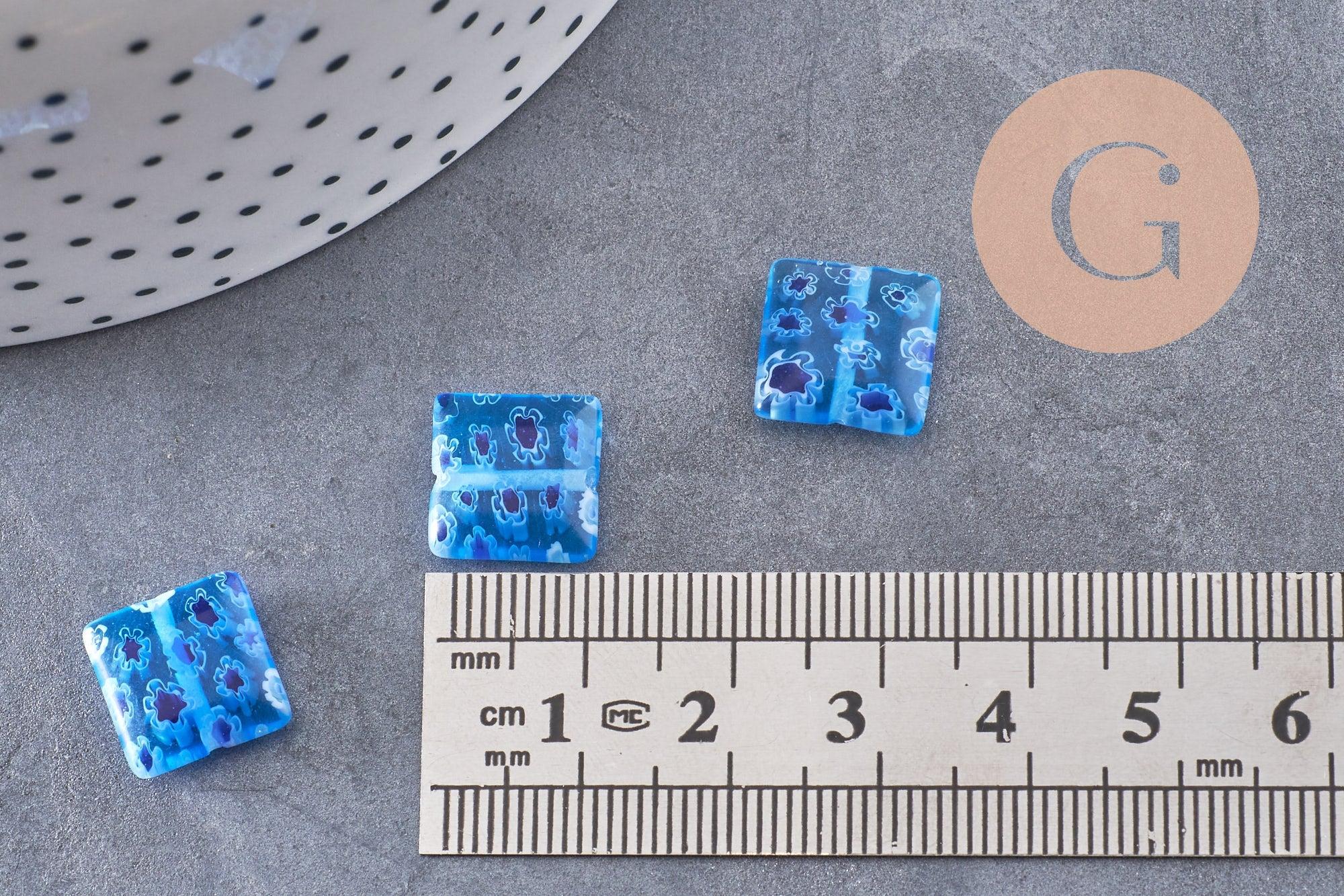 Cuenta de vidrio millefiori cuadrada, cuenta de vidrio, vidrio artesanal, cuenta de joyería de verano, creación de joyería de 11 mm, 5 cuentas