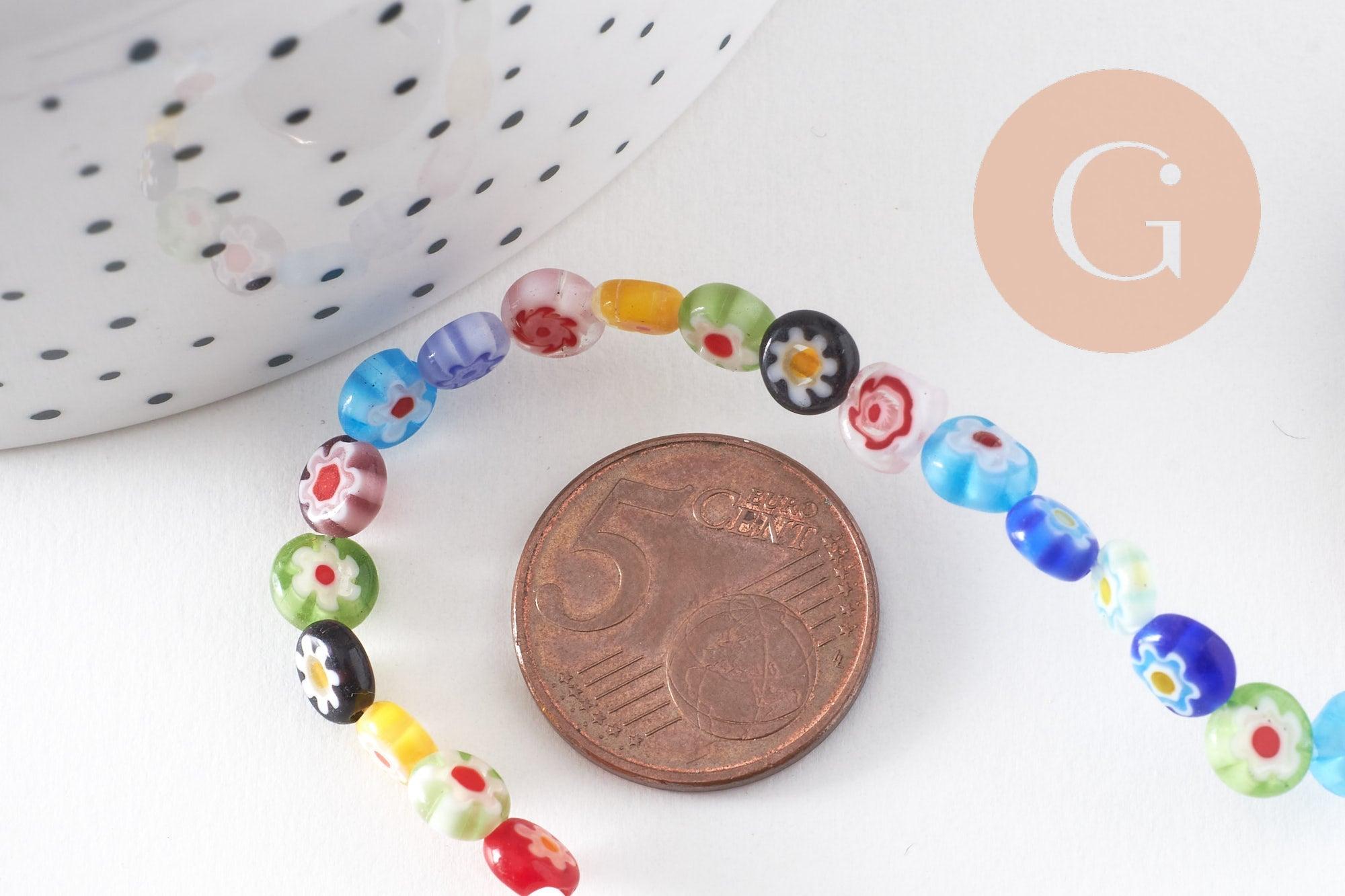 Cuenta circular de vidrio millefiori de 6 mm, cuenta de vidrio de la suerte, cuenta de vidrio artesanal, cuenta de joyería de verano, alambre de 35 cm, x1 (G5384)