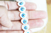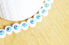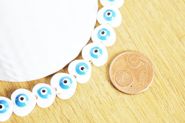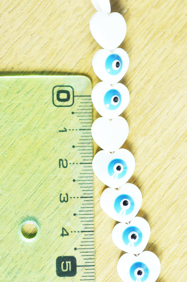 Cuenta de nácar blanco natural en forma de corazón con ojo turco azul claro, 12 mm, x 10 (G3405)