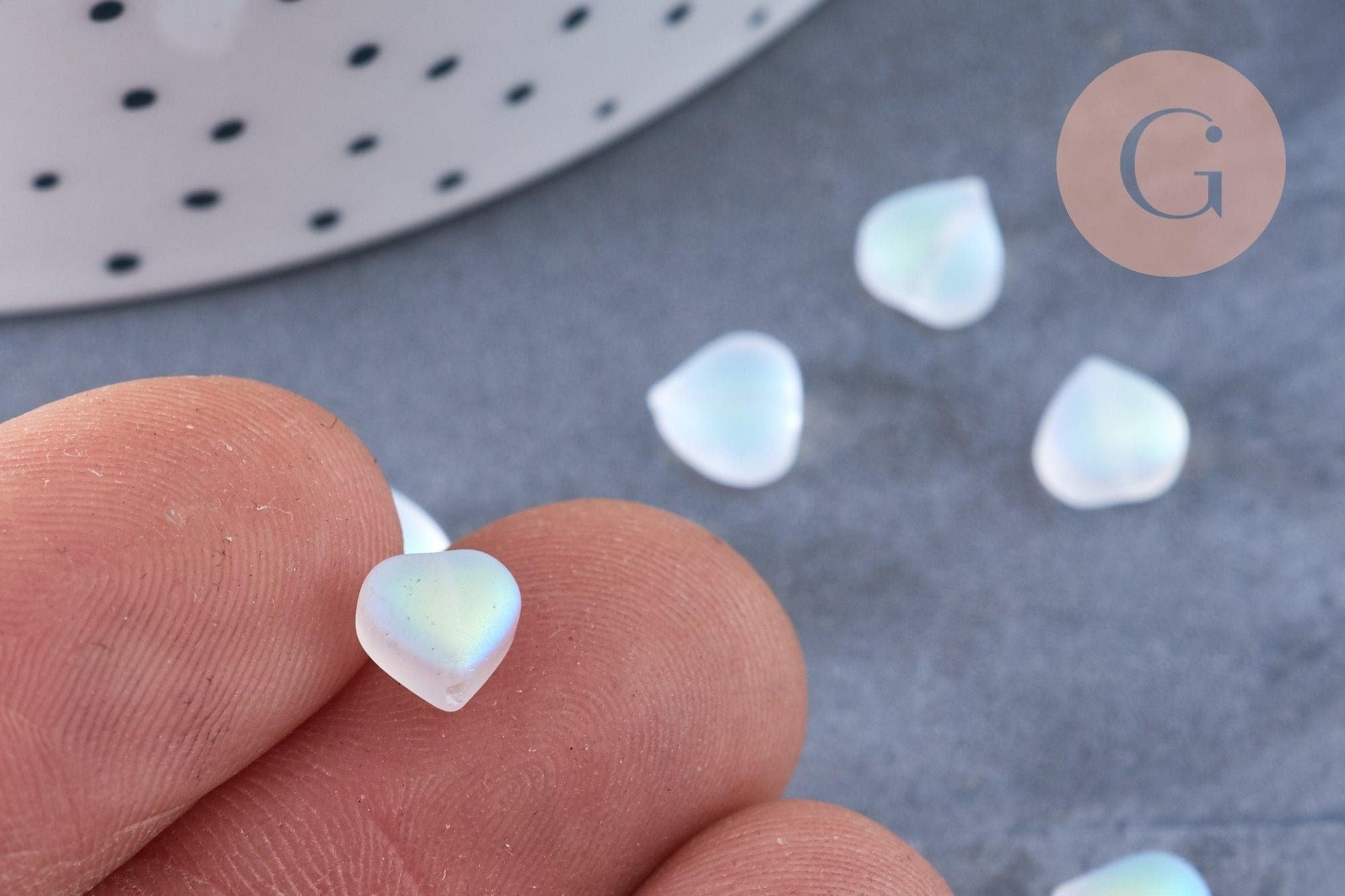 Cuentas de vidrio iridiscente en forma de corazón de 6 mm, cuentas de vidrio para creación de joyas x10 (G6595)