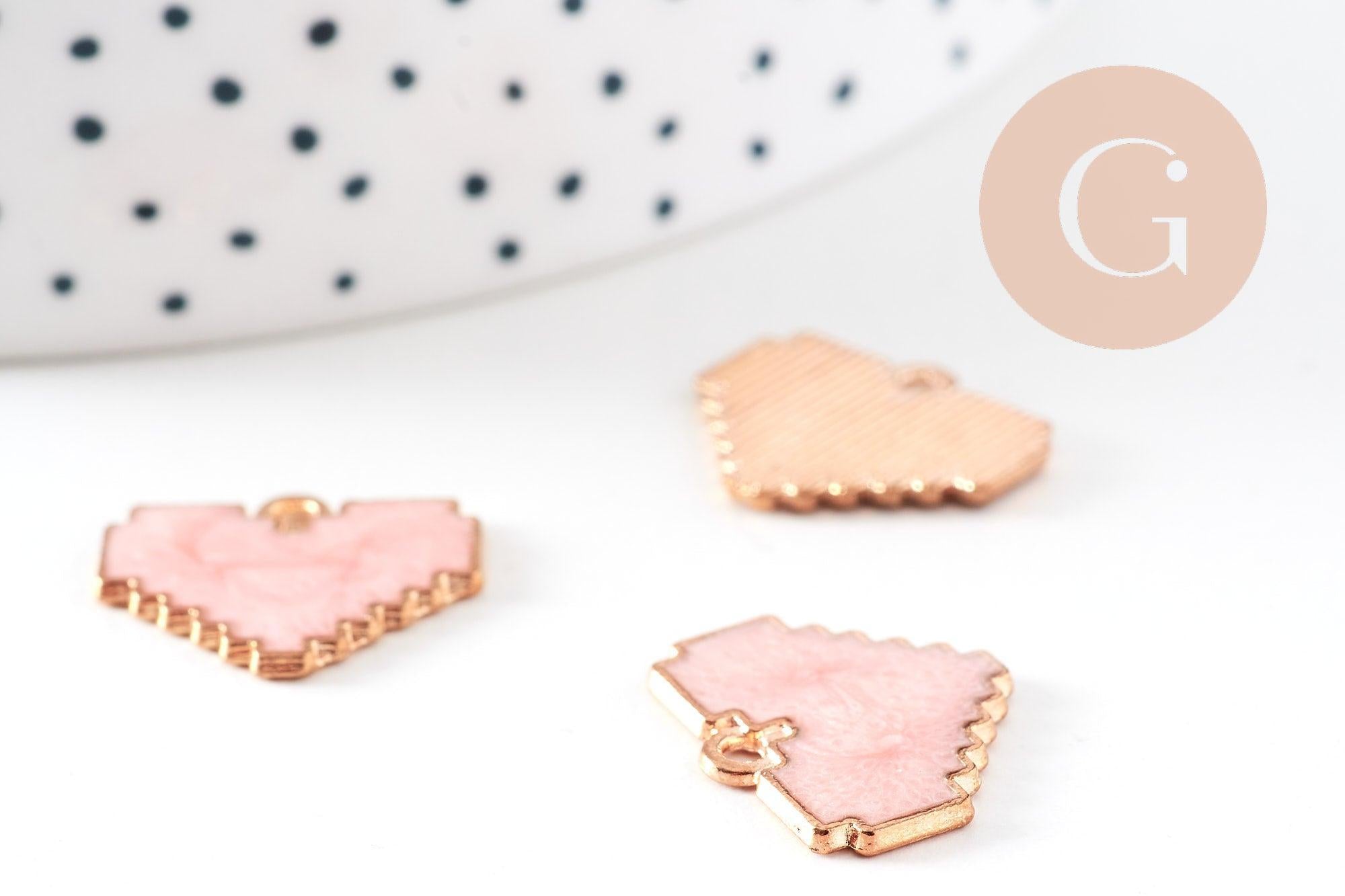 Adopta ya este colgante de corazón en zamac dorado y esmalte rosa para crear tus pequeñas joyas de amor: ideal para crear pendientes y collares.