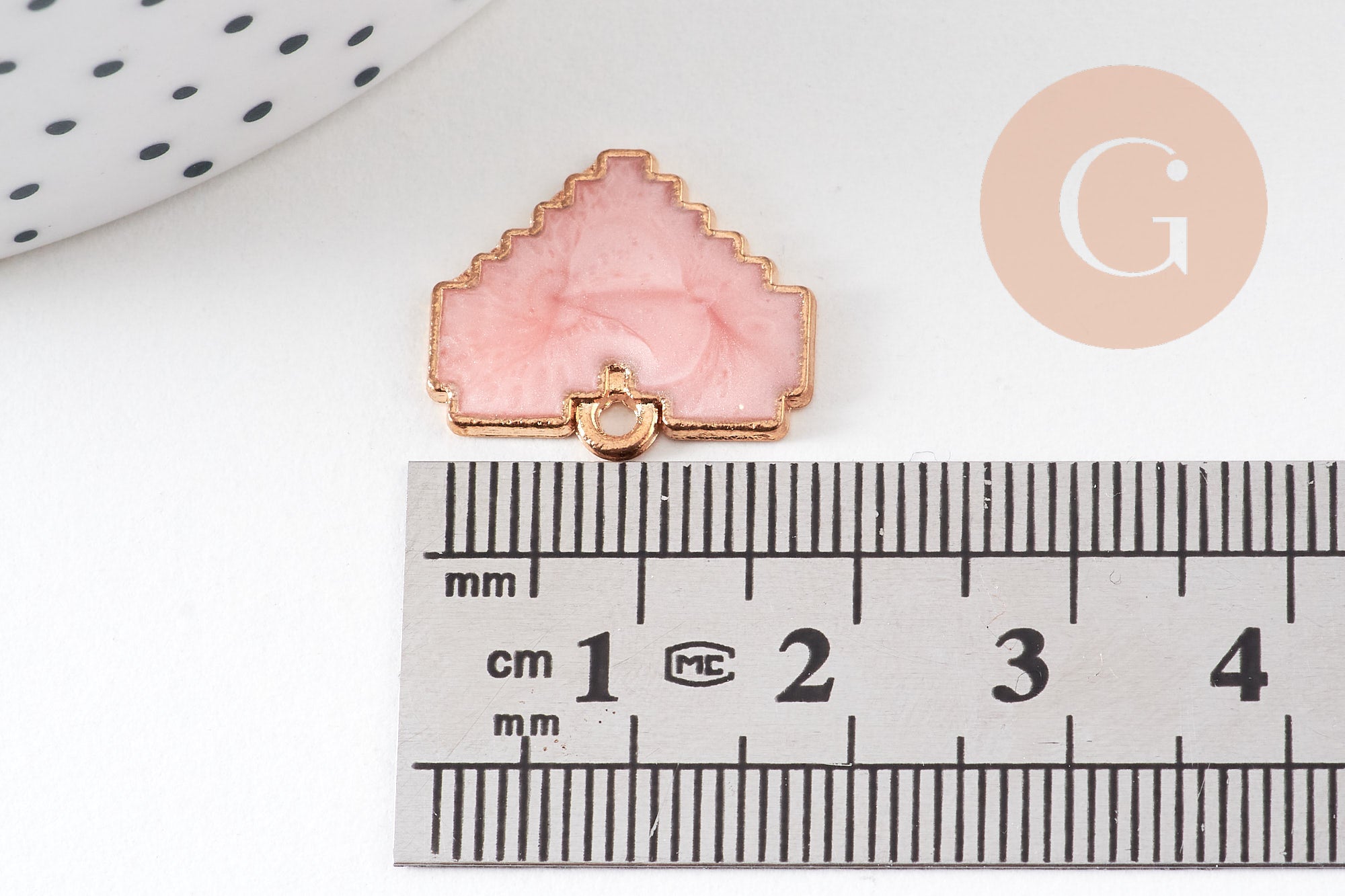 Perle coeur zamac doré émail rose nacré 15x18mm, création bijou amour amitié x1 (G5310)