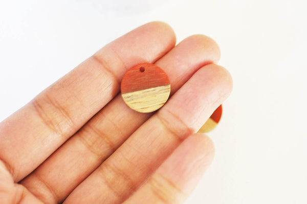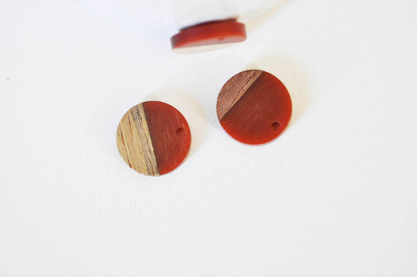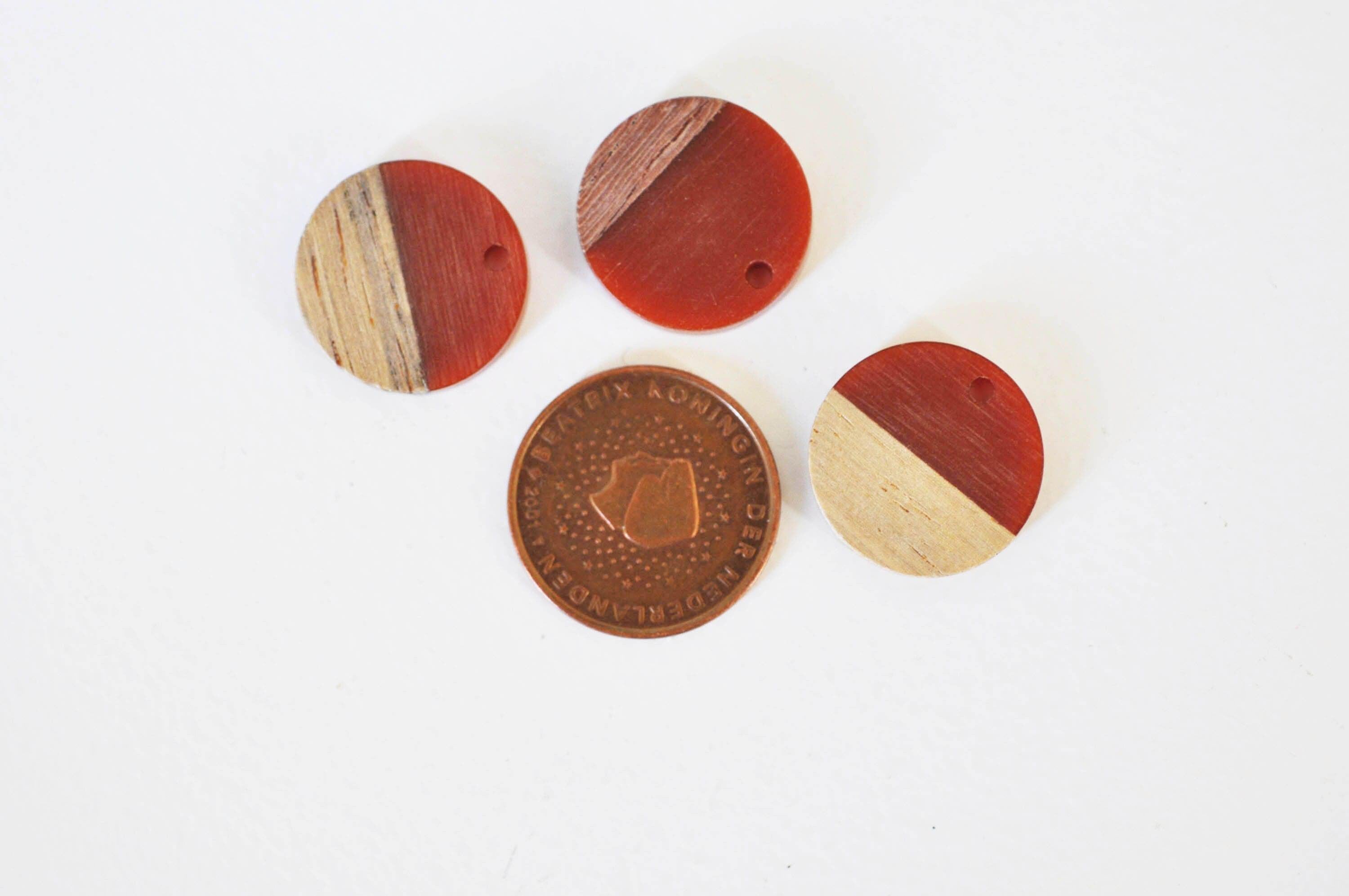 perle disque bois résine orange 18mm,création bijoux bois, x5, G3403